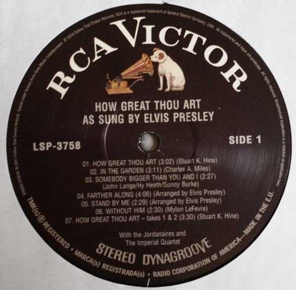 HOW GREAT THOU ART Side A: How Great Thou Art/ In The Garden/ Somebody Bigger Than You And I/ Farther Along/ Stand By Me/ Without Him/ How Great Thou Art (Takes 1 & 2) Side B: So High/ Where Could I Go But To The Lord/ By And By/ If The Lord Wasn't Walking By My Side/ Run On/ Where No One Stands Alone/ Crying In The Chapel/ Somebody Bigger Than You And I (Takes 14 Fs, 15 & Wp 5) Side C: Run On (Takes 1 & 2)/ Stand By Me (Takes 9 & 10)/ So High (Take 1)/ By And By (Takes 1, 2, 3, 4 Fs, 5 & 7)/ By And By (Takes 8 & 9)/ Beyond The Reef (Overdubbed Version) Side D: If The Lord Wasn't Walking By My Side (Take 1)/ Without Him (Take 1)/ Somebody Bigger Than You And I (Take 12)/ In The Garden (Takes 1-3)/ Run On (Takes 3 - 6)/ Where No One Stands Alone (Takes 2, 3 & Wp 5) Released: February 15, 2011 Cat.-No.: LSP 3758 (506020-975016) Format: 12'' / 33 ? rpm (2 Record Set) |