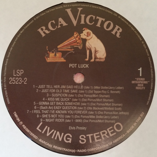 POT LUCK SESSIONS Side A: Just Tell Her Jim Said Hello (Take 1)/ Just For Old Time Sake (Take 1)/ Suspicion (Take 1)/ Kiss Me Quick (Take 1)/ Gonna Get Back Somehow (Take 1)/ (Such An) Easy Question (Take 2)/ I Feel That I've Known You Forever (Take 1)/ She's Not You (Take 1)/ Night Rider (Take 1 - 0690) Side B: Something Blue (Take 2)/ You'll Be Gone (Take 2)/ Fountain of Love (Takes 1, 2)/ That's Someone You Never Forget (Take 1)/ I'm Yours (Take 1)/ Gonna Get Back Home Somehow (Take 2)/ Just Tell Her Jim Said Hello (Take 2)/ Just Tell Her Jim Said Hello (Take 4) Side C: She's Not You (Take 2, WP Take 4)/ Fountain of Love (Takes 4, 9)/ That's Someone You Never Forget (Take 5)/ Just For Old Time Sake (Takes 2, 3, 4)/ (Such An) Easy Question (Takes 1, 3)/ I'm Yours (Take 2)/ Night Rider (Takes 1-FS, 2 - 1006) Side D: Kiss Me Quick (Take 4)/ Just Tell Her Jim Said Hello (Take 5)/ I'm Yours (Take 5)/ Night Rider (Take 5 - 0690)/ Suspicion (Takes 3, 2)/ I Feel That I've Known You Forever (Takes 4, 3)/ Gonna Get Back Home Somehow (Takes 3, 5)/ That's Someone You Never Forget (Take 7) Released: June 2011 Cat.-No.: LSP-2523-2 (506020-975025) Format: 12'' / 33 ? rpm (2 Record Set) |