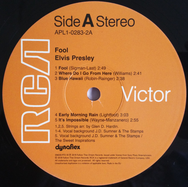 FOOL Side A - The Original Planned Version Of The Album: Fool/ Where Do I Go From Here/ Blue Hawaii/ Early Mornin' Rain/ It's Impossible Side B: Reconsider Baby (Blues Jam)/ Hawaiian Wedding Song/ Ku-U-I-Po/ I'll Take You Home Again Kathleen/ No More Side C - The Outtakes And Alternates: Fool (With Full Strings Overdub)/ Steamroller Blues (Single Mix)/ Until It's Time For You To Go (Take 1 & 2)/ (That's What You Get) For Lovin' Me (Take 9 & 10)/ I Will Be True (Take 1 & 2) Side D: Don't Think Twice, It's All Right (Take 2, Informal Recording)/ Love Me, Love The Life I Lead (Alternate Mix)/ It's Still Here (Take 4 & 5) Released: February 2018 Cat.-No.: APL1-0283-2 (506020-975118) Format: 12'' / 33 ? rpm (2 Record Set) |