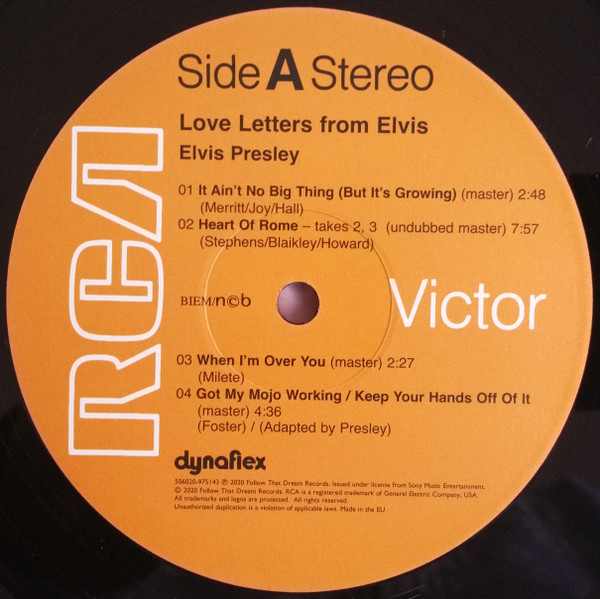 LOVE LETTERS FROM ELVIS Side A: It Ain't No Big Thing (But It's Growing) (Master)/ Heart Of Rome - takes 2, 3 (Undubbed Master)/ When I'm Over You (Master)/ Got My Mojo Working / Keep Your Hands Off Of It (Master) Side B: Life (Takes 1, 2)/ Cindy, Cindy (Takes 2, 3 - Undubbed Master)/ Rags To Riches (Take 3)/ Love Letters (Takes 3, 1)/ It Ain't No Big Thing (But It's Growing) (Takes 1, 2) Side C: I'll Never Know (Master)/ Something (Master)/ This Is Our Dance (Takes 6, 7, 9, 11 - Undubbed Master)/ Only Believe (Takes 3, 4 - undubbed master) Side D: The Sound Of Your Cry (Master)/ It Ain't No Big Thing (But It's Growing) (Takes 3, 4, 5, 6)/ Love Letters (Master)/ If I Were You (Takes 2, 3, 4, 5)/ Life (Take 10) Released: February 2020 Cat.-No.: 506020-97414 Format: 12'' / 33 ? rpm (2 Record Set) |