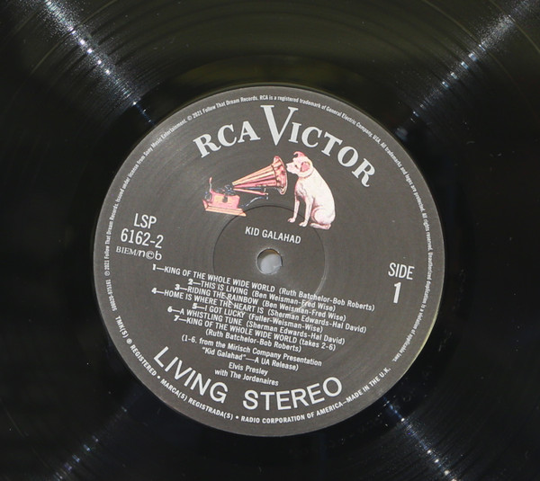 ELVIS IN KID GALAHAD Side A: King Of The Whole Wide World/ This Is Living/ Riding The Rainbow/ Home Is Where The Heart Is/ I Got Lucky/ A Whistling Tune/ King Of The Whole Wide World (Take 2 - 6) Side B: This Is Living (Take 2)/ King Of The Whole Wide World (Take 8)/ Riding The Rainbow (Take 1)/ I Got Lucky (Take 1)/ King Of The Whole Wide World (Take 11)/ Home Is Where The Heart Is (Take 10)/ This Is Living (Take 4 - 8) Side C: A Whistling Tune (Take 2)/ King Of The Whole Wide World (Take 16 - 19)/ Home Is Where The Heart Is (Take 13,14)/ I Got Lucky (Take 6)/ Riding The Rainbow (Take 2 - 4)/ King Of The Whole Wide World (Take 30, 31) Side D: I Got Lucky (Remake - Take 1)/ I Got Lucky (Remake - Take 2 - Unedited Master)/ King Of The Whole Wide World (Remake - Take 1 - 3)/ Home Is Where The Heart Is (Take 21 - Unedited Master)/ Riding The Rainbow (Remake - Take 2 - 6)/ King Of The Whole Wide World (Remake - Take 4 / Unedited Master) Released: May 2022 Cat.-No.: LSP-6162-2 (506020-975161) Format: 12'' / 33 ? rpm (2 Record Set) |