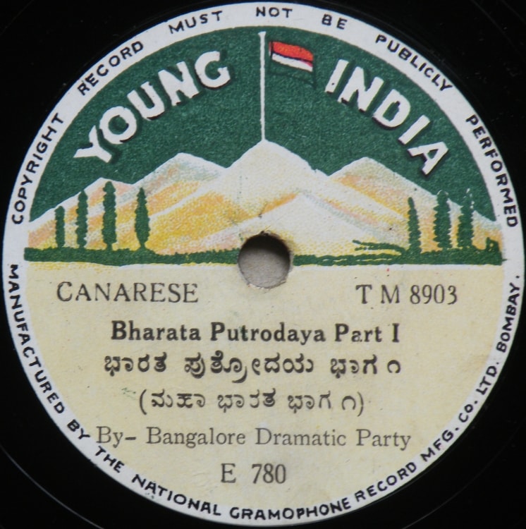 1935 - 1955 Young India record company operated in Bombay from about 1935-55 and produced records with variety of colorful labels. Early Parbhat Film Company film songs records were made on this label and contained a small thumbnail photograph of the singer at top left rim of the label. V Shanataram was one of the promoters and when he formed Rajkamal Kala Mandir, some of his early film songs were too released on Young India label. Pandit Jawaharlal Nehru and Netaji Subhash Chandra Bose recorded messages for Indian on this label and their photographs have been published on the record labels. Apart from these HMV also produced records with photographs of Mahatma Gandhi, Rabindra Nath Tagore and Bhagat Kanwar Ram. |