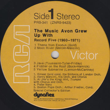 By about 1968, the label changed to the regular tan RCA label (far left). By 1971 or 1972, the tan label had added a small "RCA Special Products" just to the left of the center hole (near left). This was actually the first time "RCA Special Products" appeared on the label. |
