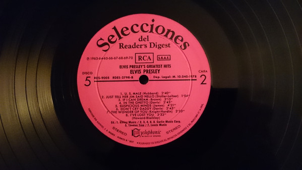 Elvis Presley – Elvis Presley's Greatest Hits Label: Reader's Digest – GELV-6A, RCA – RDS-9005 Format: 7 x Vinyl, LP, Compilation Box Set, Compilation Country: Spain Released: 1978 |