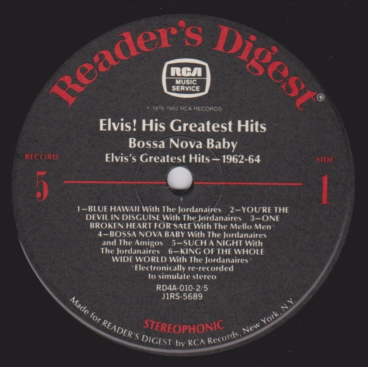 Record 5 Side 1 : Blue Hawaii - You're the Devil In Disguise - One Broken