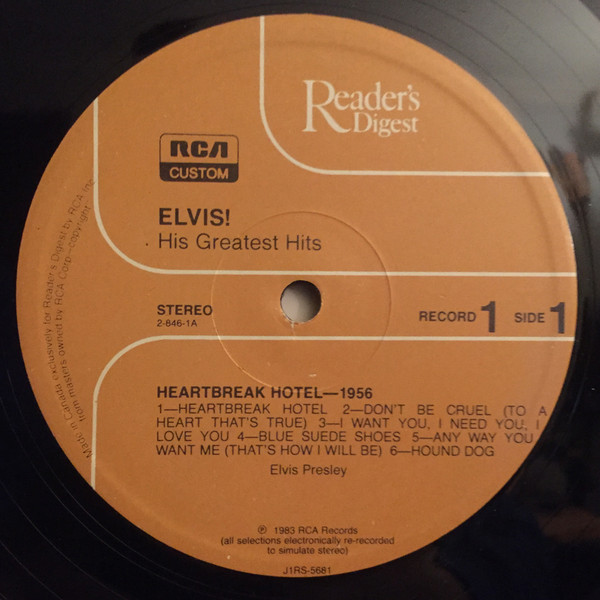Record 1 Side 2 : Love Me Tender - Too Much - Love Me - I Was The One