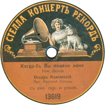 | Stella Record label was used by German company Schallplatten-Vertrieb GmbH. The headquarters and the plant located in Berlin. It had one more factory in Warsaw that was dedicated for pressing phonograph records solely with Russian repertoire. The company began to make Russian recordings at least from November 1909, which follows from an advertisement on this record, where P. D. Orlov directly names the date of recording November 9, 1909 and the name of the label - "Stella". Also, the factory pressed Russian records from Homokord and Anker-Record matrices. After the outbreak of WWI the company halted all its operations in Russia. | |||