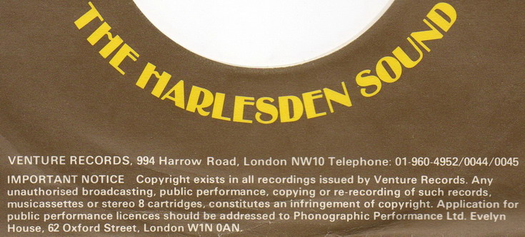 VENTURE UK Label and Company Sleeve 1981