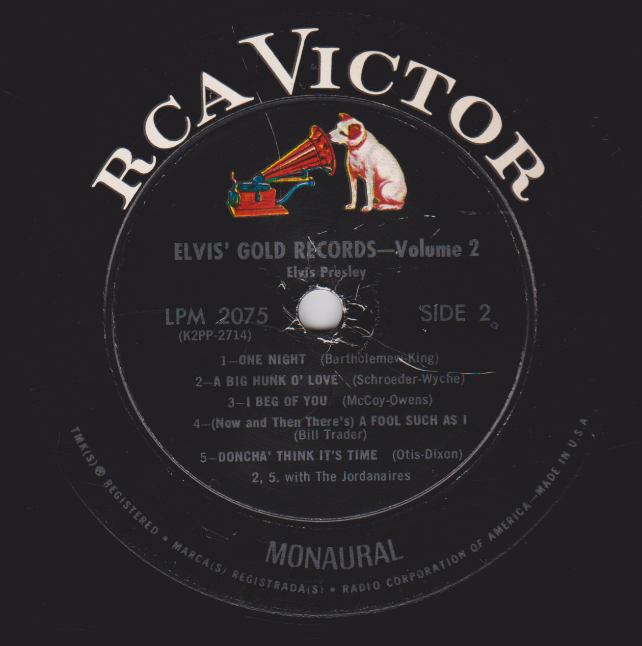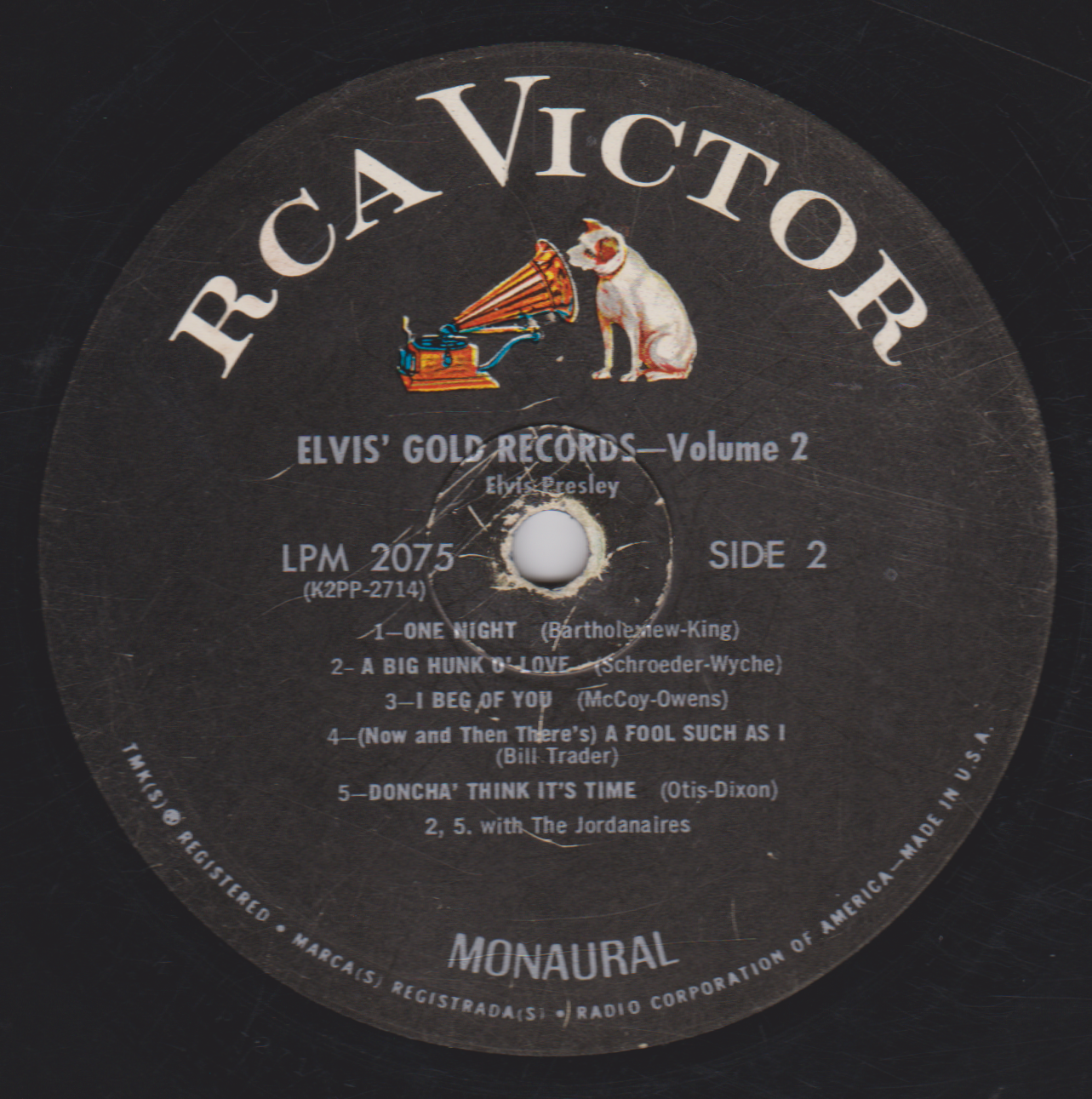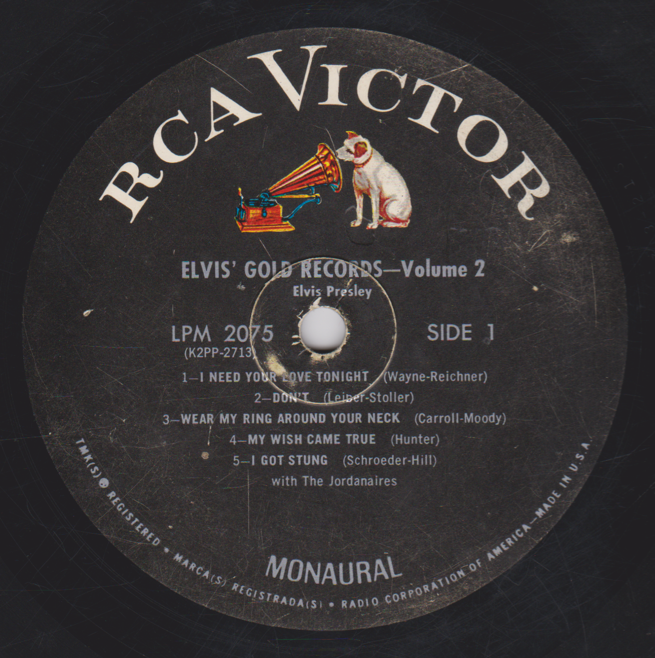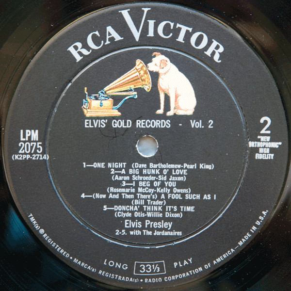 | 50,000,000 Elvis Fans Can't Be Wrong (Elvis' Gold Records, Vol. 2) Label: RCA RVP-6212 (LSP 2075e) Manufactured By RVC Corporation Orange labels, RCA in white letters, other text in black. Matrix / Runout (Side A): M2PY 4737 |