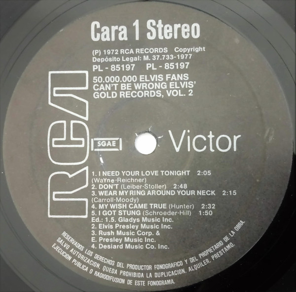 | 50,000,000 Elvis Fans Can't Be Wrong (Elvis' Gold Records - Volume 2) Label: RCA Victor PL-85197 Previously released as LPM-2075 Matrix / Runout (Runout Stamped Side A): PL-42404 A? 1 ~O |