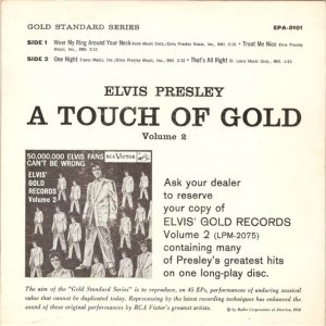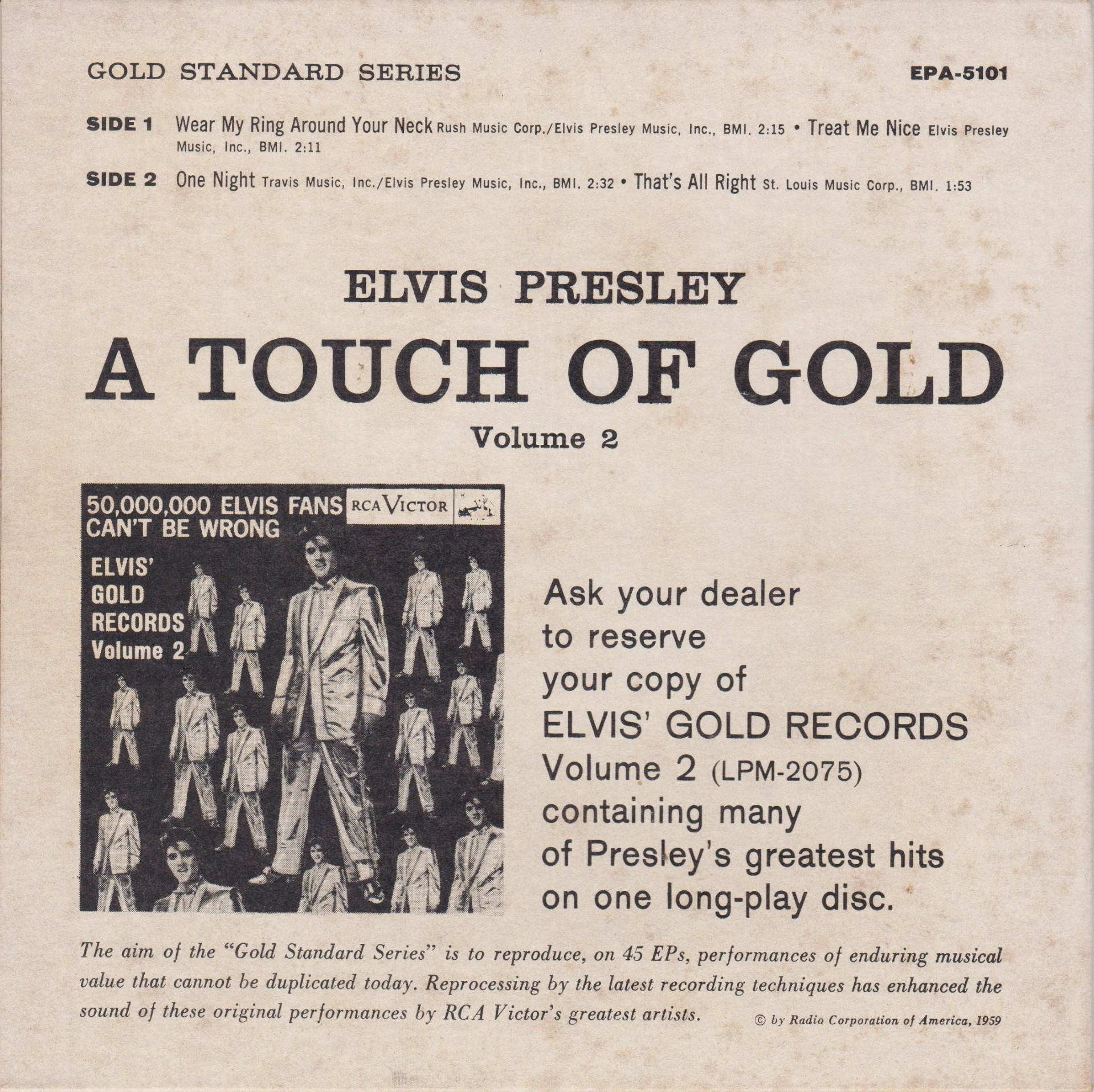 | A Touch Of Gold Vol. 2 Label: RCA RCX 7203 Series: Gold Standard Series Format: Vinyl, 7", 45 RPM, EP, Reissue Country: UK Released: 1982 This release differs from the UK original as a result of Your Cheating Heart showing as track A2. On the original UK release RCX 1048 track A2 is listed as Treat Me Nice. |