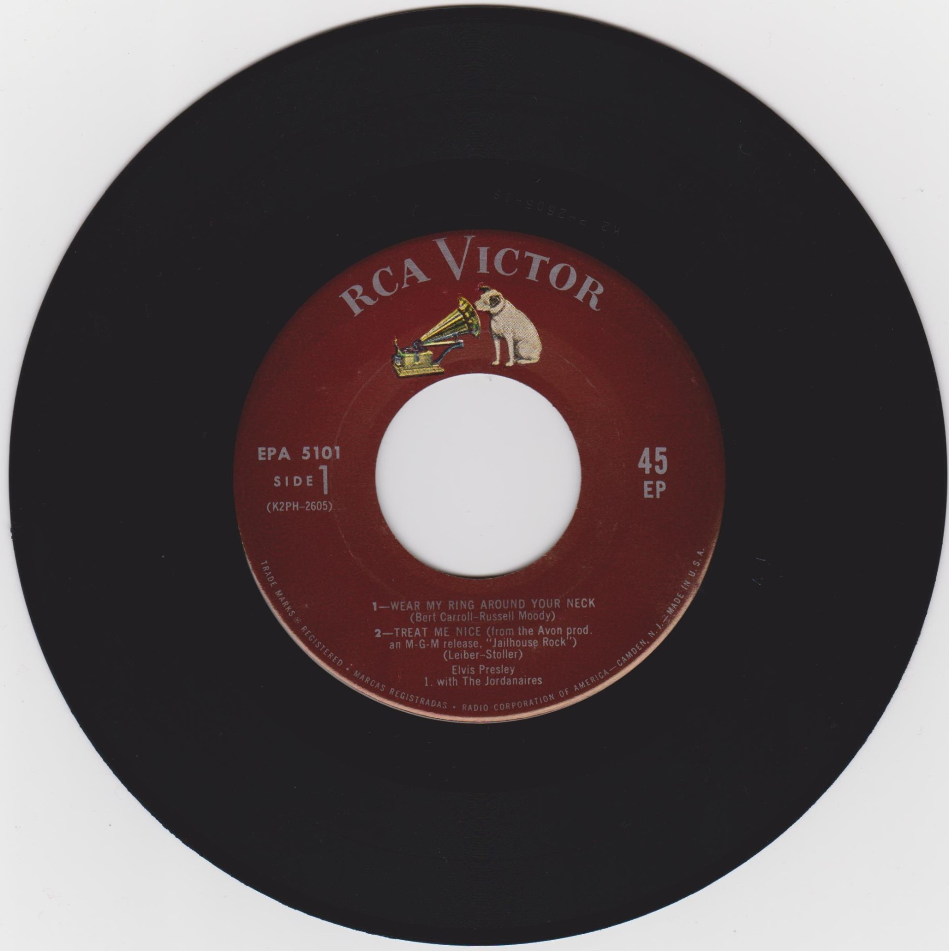 Label vari a tions for these EPs may not exist, as all press ings of the records for the three ti tles ap pear to have been done solely at the Indianapolis plant. Disc: (1965) Black label, dog on side. |