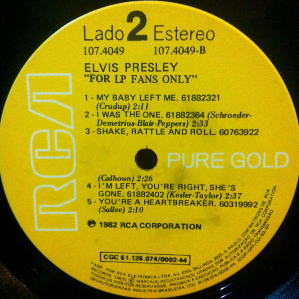 | For LP Fans Only Label: RCA 107.4049 Manufactured By RCA Eletr nica Ltda. |