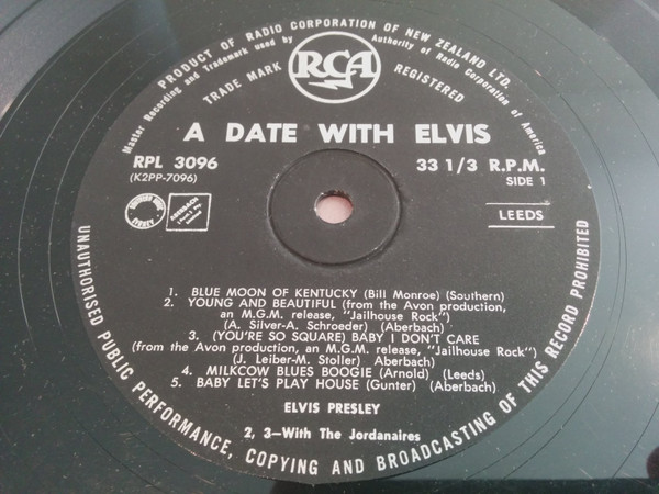 | A Date With Elvis Label: WaxTime In Color 950703 Side 1: Side 2: Phonographic Copyright ? WaxTime In Color Liner Notes Greil Marcus A6, A7, B6 & B7 are bonus tracks Barcode (Printed): 8 436559 468237 |