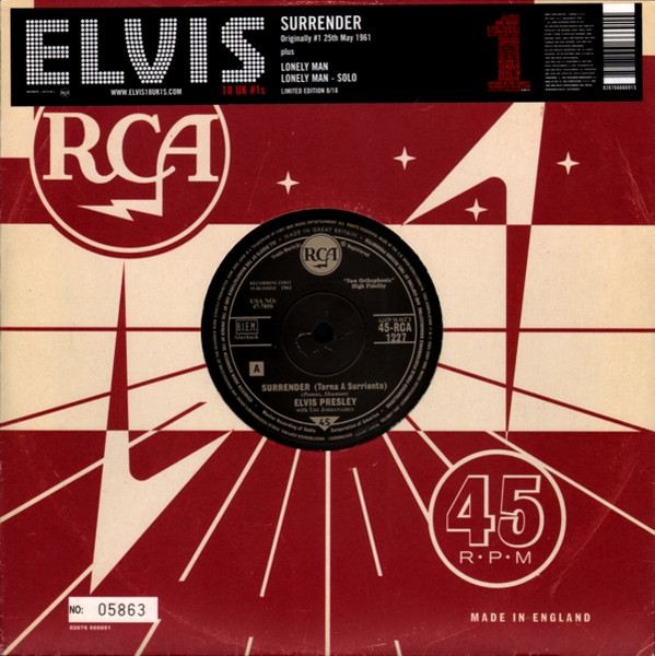 | Label: RCA Victor – 37-7850 Format: Vinyl, 7", 33 ? RPM, Single Country: US. Released: 1961 Pressed By – RCA Records Pressing Plant, Rockaway Label Variation with "New Orthophonic" High Fidelity on left side over Catalog number. Matrix / Runout: M2PI-1860-6S R In 1961, RCA Victor Records released Lonely Man b/w Surrender on compact