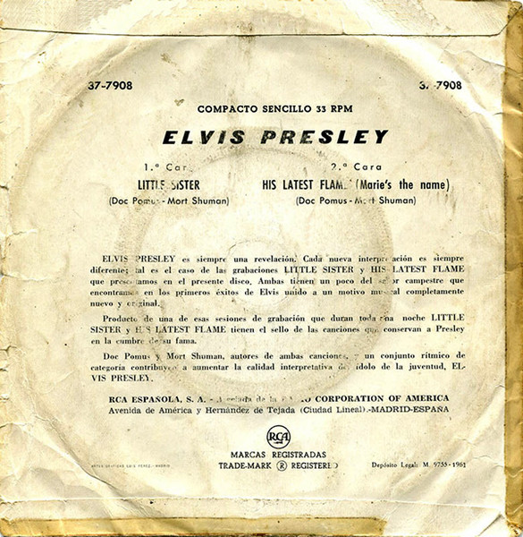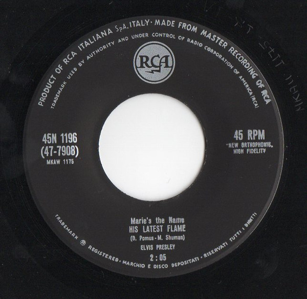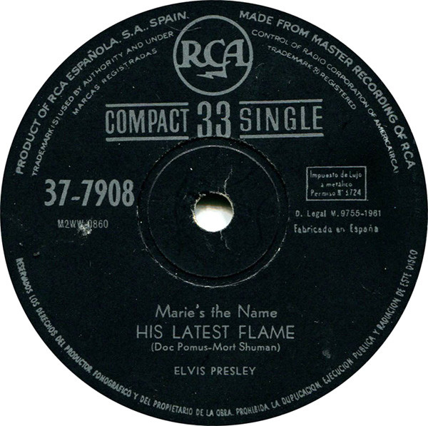 His Latest Flame * Label: RCA Victor – 47-7908 Published By – Elvis Presley Music, Inc. Rights Society: BMI |