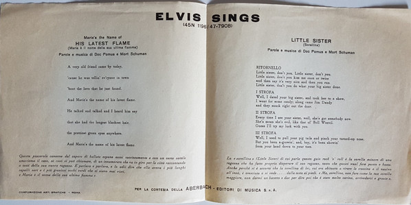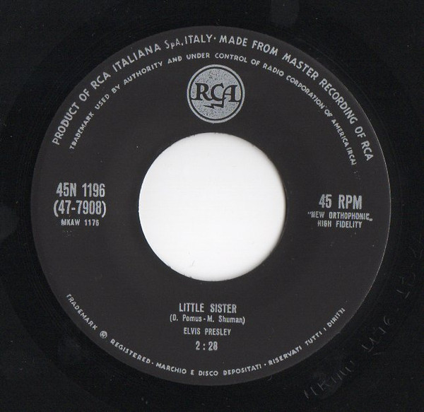 | Label: RCA Italiana – 45N 1196, RCA Italiana – 47-7908 Format: Vinyl, 7", Single, 45 RPM Country: Italy Released: 1961 Manufactured By – RCA Italiana S.p.A. Includes a flier with song lyrics and Italian translations. Matrix / Runout (Runout side A Variant 1): |