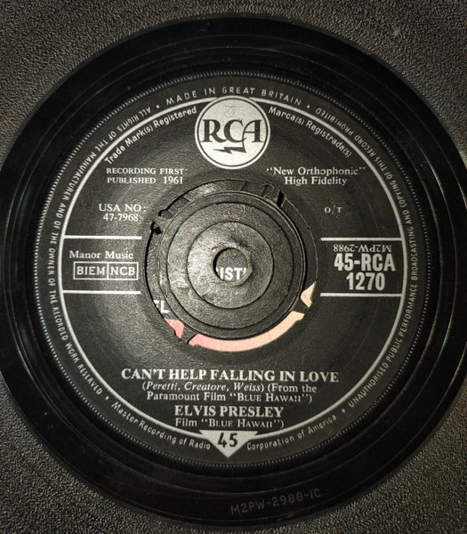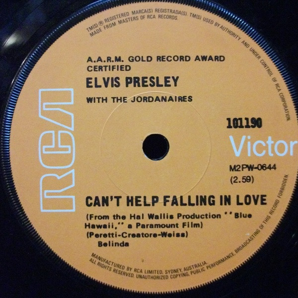 Can't Help Falling In Love Catalogue Number : RCA 47 - 7968 Published By – Gladys Music Inc. Details : |