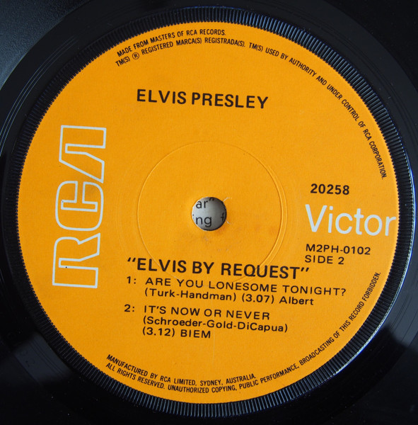 Label: RCA Victor – 101190 Format: Vinyl, 7", 45 RPM, Reissue, Orange label Country: Australia Released: 1970 Orange label re issue 1970 Matrix / Runout: M2PW 0644 C1A1 |