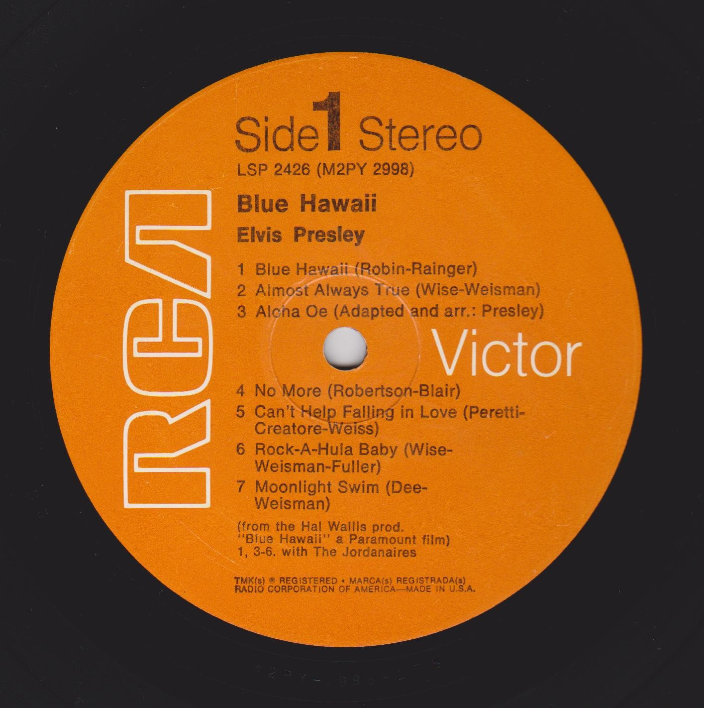 HAWAII (LP) (US) RCA LSP / LPM 2426 Released: October 20, 1961 Side 1 Blue Hawaii ** Almost Always True ** Aloha-Oe * No More * Can't Help Falling In Love *** Rock-A-Hula Baby *** Moonlight Swim ** Side 2 Ku-U-I-Po * Ito Eats ** Slicin' Sand * Hawaiian Sunset * Beach Boy Blues *** Island Of Love ** Hawaiian Wedding Song ** * Recorded: Radio