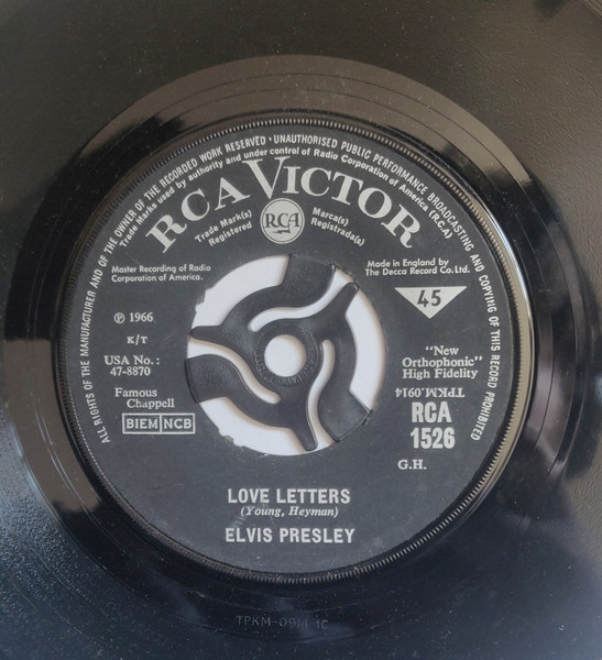 | Label: RCA Victor – RCA-1545 Format: Vinyl, 7", 45 RPM, Single Country: UK Released: 1966 Made By – The Decca Record Company Limited Matrix / Runout (Side A Printed Label): TPKM 5307 |