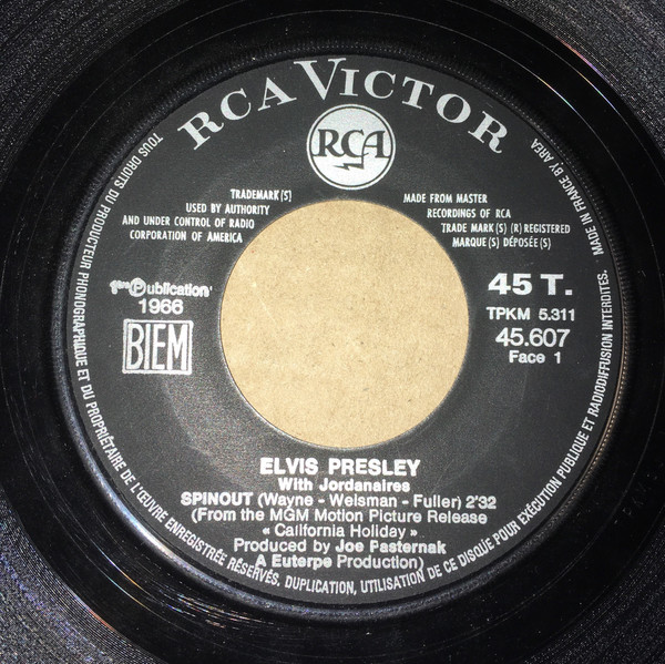 | Label: RCA Victor – 45.607 Format: Vinyl, 7", 45 RPM, Single, Mono Country: France Released: 1966 Made By – AREA |