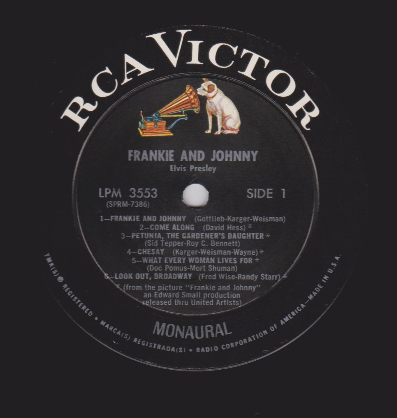 Label: RCA – 447-0656 Series: Gold Standard Series Format: Vinyl, 7", 45 RPM, Single, Reissue Country: US Released: Not Known Published By – Gladys Music Inc. – Side A Side B is listed on the Label as "(from the picture "Frankie and Johnny" an Edward Small production released thru United Artists)" Label Variant: Black Gold Standard Series label Matrix / Runout (Side A , Label Printed): SPKM-7378 |