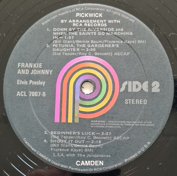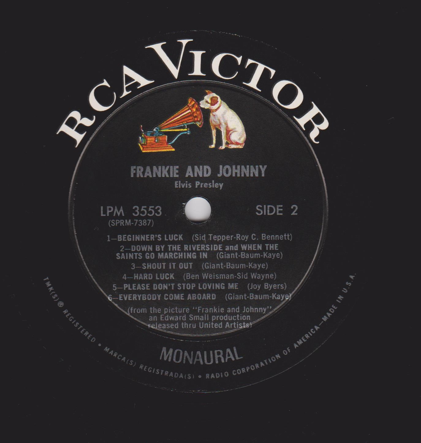 TRACKLISTING AND EXTRA INFORMATION Side 1: 1. Frankie And Johnny Side 2: 7. Beginner's Luck Title - Frankie And Johnny |