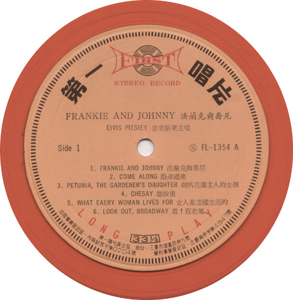 | Label: First Record – FL-S1354, First Record – (S) FL-1354 Format: Vinyl, LP, Album, Stereo, Unofficial Release, Orange Country: Taiwan Released: Not Known No track times or credits given, Some spelling errors copied from labels, front and back cover same. English credits and titles on sleeve, Chinese credits and titles on the labels. Matrix / Runout (A): (S)FL-1354A, SPRS--7388--4S |