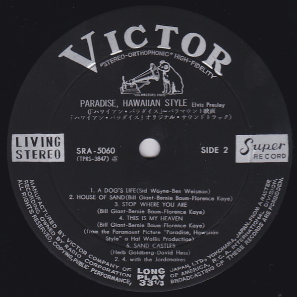 | Label: Victor – SRA-5060 Format: Vinyl, LP, Album, Stereo Country: Japan Released: 1966 Manufactured By – Victor Company Of Japan, Ltd. Backing Vocals – The Jordanaires (tracks: A1 to A4, B2 to B4) In gatefold sleeve with Japanese liner notes and English lyrics on the inside. Track timings taken from the inside cover although A3 is considerably longer than 1:13. No mono version was released in Japan. Matrix / Runout (Runout Side A - stamped): TPRS 3846 111 |