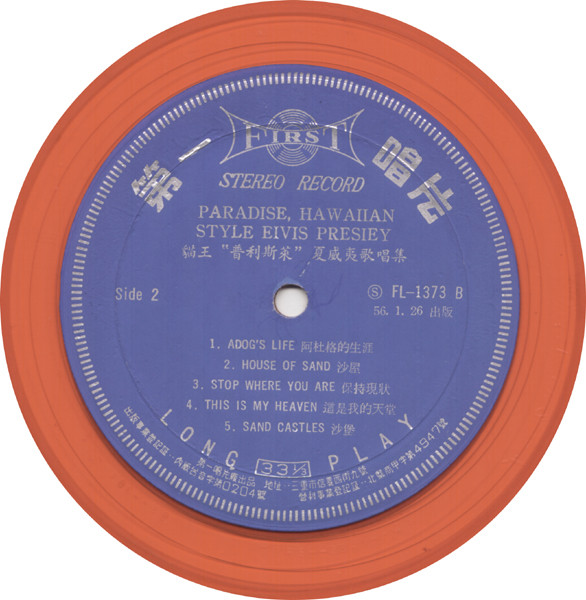 | Label: First Record – FL-S1373 Format: Vinyl, LP, Album, Stereo, Unofficial Release, Orange Country: Taiwan Released: 26 Jan 1967 Taiwan pressing, no credits or track times given, some spelling errors copied from labels, see scans. Matrix / Runout (A): (S)FL-1373A, TPRS--3846--2S |