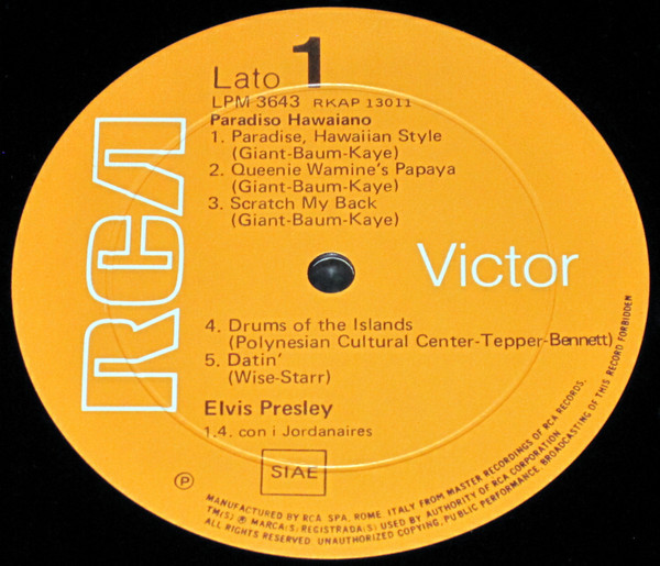 | Label: RCA Victor – LPM-3643 Format: Vinyl, LP, Album, Reissue, Mono Country: Italy Released: Nov 1970 Manufactured By – RCA Records Factory,