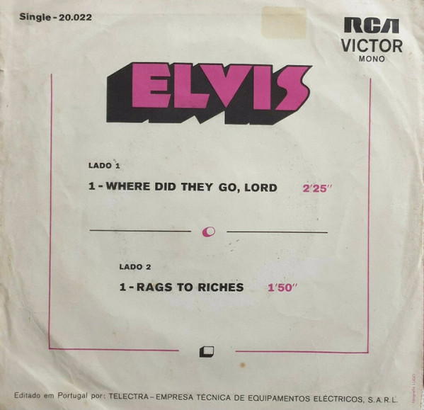 | Label: RCA Victor – 20.022, RCA Victor – N-20.022 Format: Vinyl, 7", 45 RPM, Single, Stereo Country: Portugal Released: 1971 Manufactured By – Telectra Portugal Rights Society: BIEM |