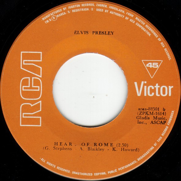 | Label: Jugoton – SRCA-88501, RCA Victor – SRCA-88501 Format: Vinyl, 7", 45 RPM, Single Country: Yugoslavia Released: 1971 Mastered At – RCA Records Made in Yugoslavia Rights Society: BMI |