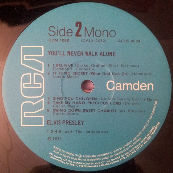 NEVER WALK ALONE (LP) (US) RCA Camden CAL 2472 Released: March 1971 Side 1 You'll Never Walk Alone Who Am I * Let Us Pray ** Peace In The Valley We Call On Him Side 2 I Believe It Is No Secret (What God Can Do) Sing You Children Take My Hand, Precious Lord * Recorded: American Studios, Memphis,