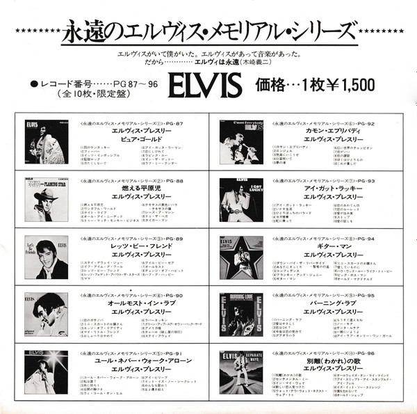 | Label: RCA – PG-93(M) Series: 永遠のエルヴィス・メモリアル ・シリーズ – 7 Format: Vinyl, LP, Compilation, Reissue Country: Japan Released: 1978 |