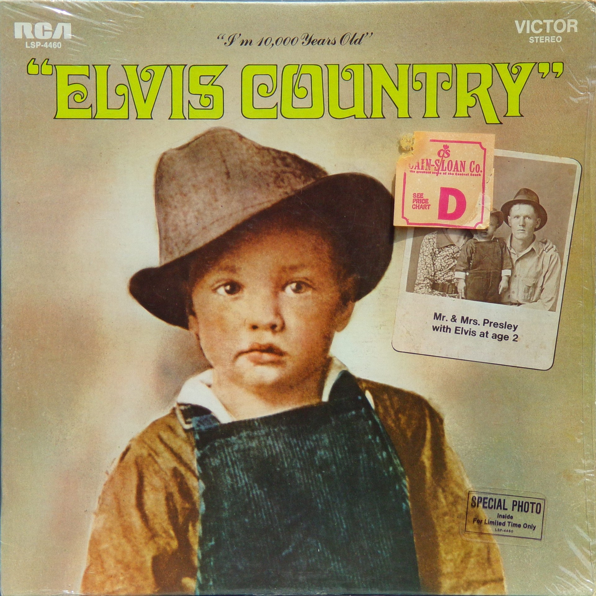 June 4, 1970 Brief History : Elvis Country (I'm 10,000 Years Old) is the thirty-seventh studio album by Elvis Presley, released on RCA Records (LSP 4460 in January 1971). Recorded at RCA Studio B in Nashville, it reached #12 on the Billboard 200. It was certified Gold on 12/1/1977 by the RIAA. It peaked at #6 in the United Kingdom, selling over one million copies worldwide. The lead single for the album, "I Really Don't Want to Know" b/w "There Goes My Everything" was released on December 8, 1970 and peaked at #21 on the Billboard Hot 100. The bulk of the album came from five days of recording sessions in June 1970 which yielded 35 usable tracks. Presley performed every track "live", recording his vocal part in the same take as the band as was standard practice for him. Eight tracks from the session were released two months earlier in November 1970 on the That's the Way It Is album. During the sessions, Presley and producer Felton Jarvis realized they had several country songs in hand, and decided to record several more to create a full album of country material. Needing two more satisfactory tracks, Elvis returned to the same studio in September where he recorded "Snowbird" and a manic, one-take version of "Whole Lotta Shakin' Goin On." Along with his second LP, Elvis' Christmas Album, Elvis Is Back!, and From Elvis in Memphis, "Elvis Country" stands as one of Presley's cohesive musical works - the closest he came to concept albums, a mere handful from his large catalogue. Nearly every style of country music is represented; bluegrass, honky tonk, Western swing, rockabilly, countrypolitan, and even the then-nascent "outlaw" movement. Snippets of the song "I Was Born About Ten Thousand Years Ago" act as a bridge between each track to enhance the sense of continuity. After this album, Presley would return to his usual practice of recording a seemingly random batch of songs on each trip to the recording studio, letting his producer assemble them into albums. Details : |