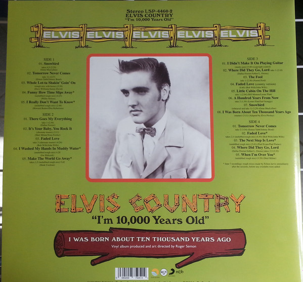 10,000 YEARS OLD, ELVIS COUNTRY (LP) (US) RCA LSP 4460 Released: January 7, 1971 Side 1 Snowbird **** Tomorrow Never Comes *** Little Cabin On The Hill * Whole Lotta Shakin' Goin' On **** Funny How Time Slips Away *** I Really Don't Want To Know Side 2 There Goes My Everything It's Your Baby, You Rock It ** Fool, The * Faded Love *** I Washed My Hands In Muddy Water *** Make The World Go Away *** * Recorded: RCA Studio B, Nashville,