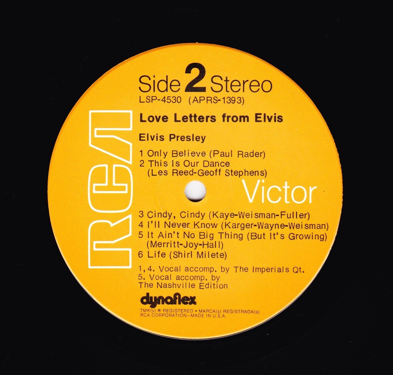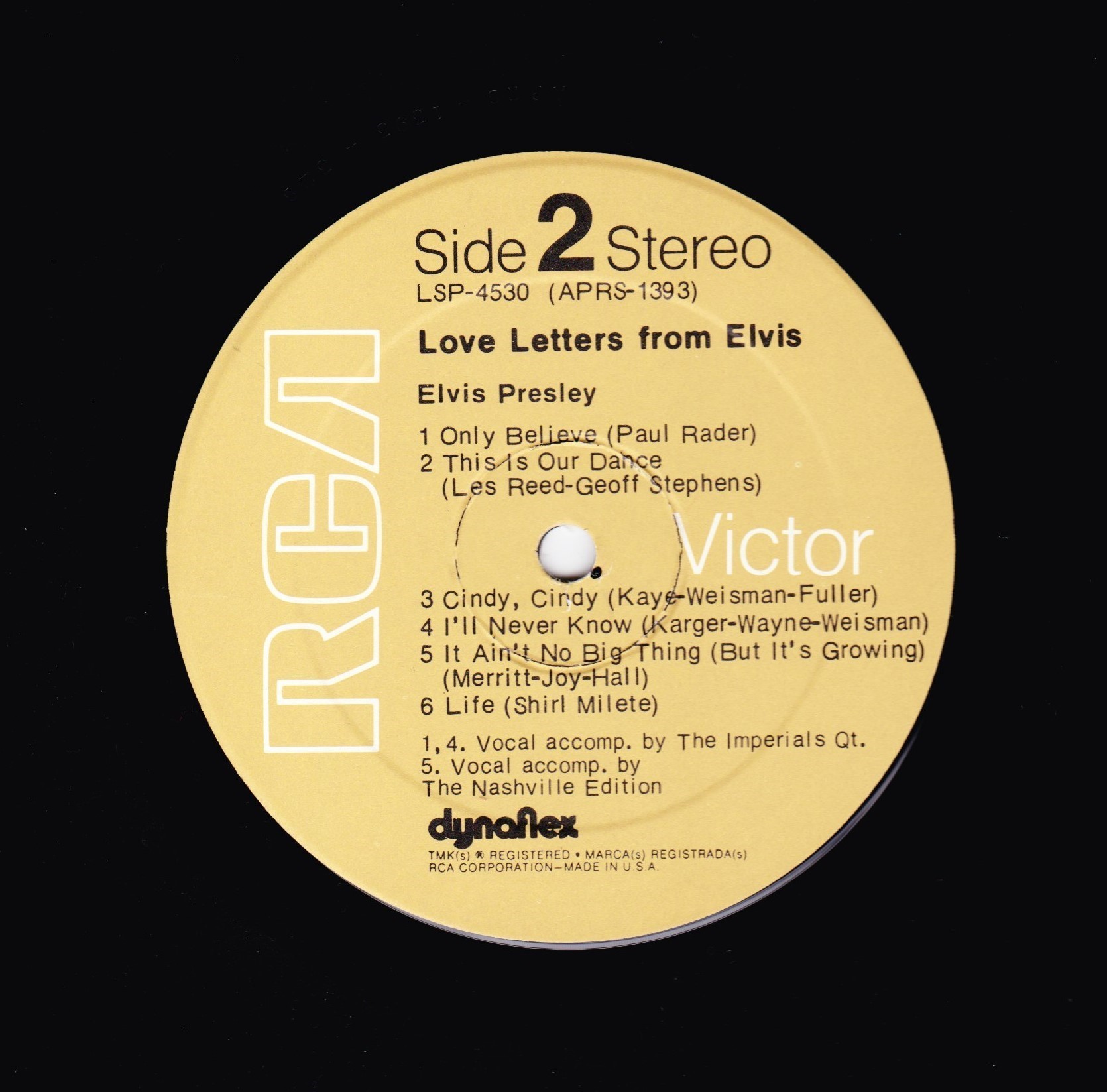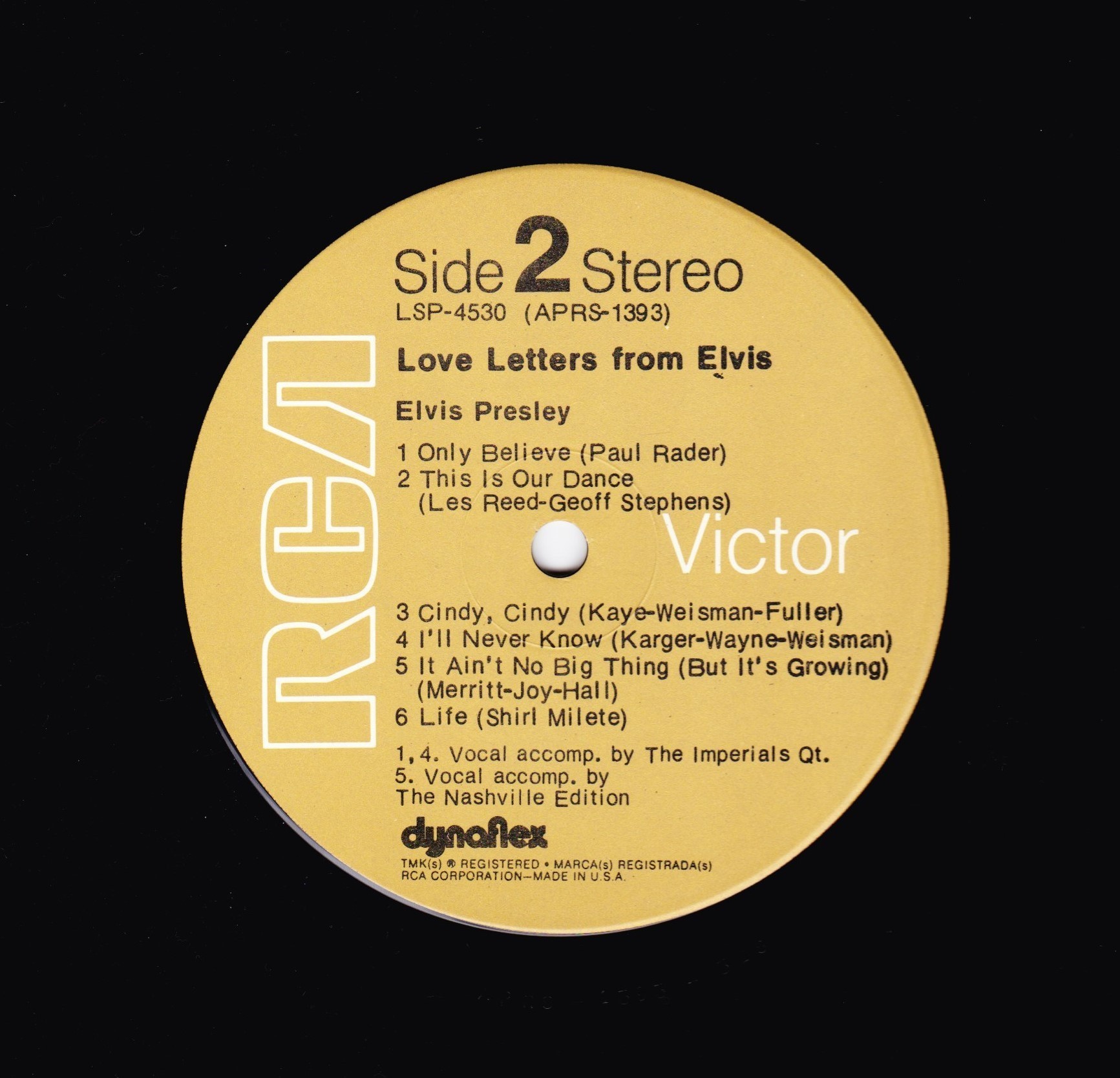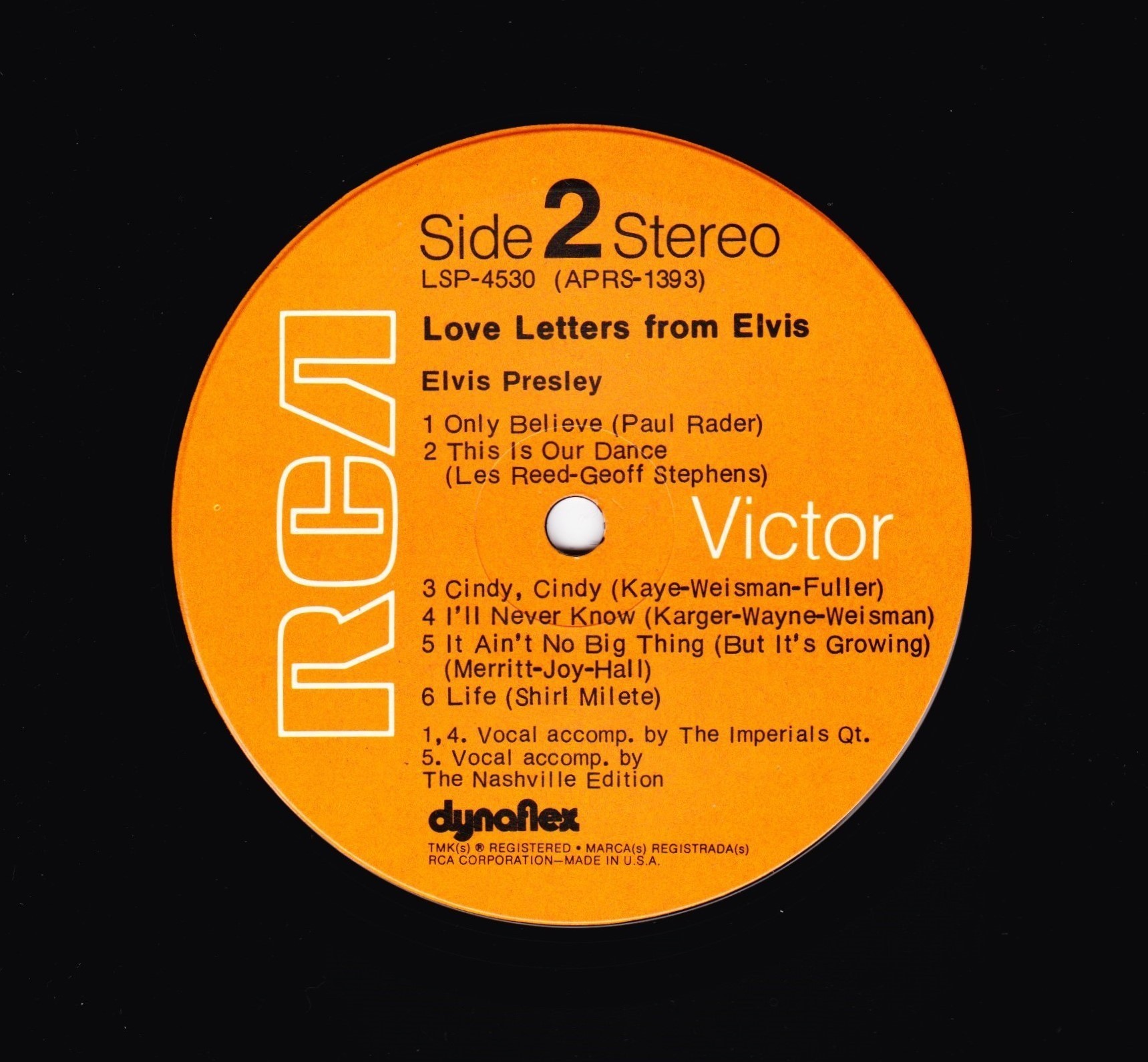 owned or controlled by RCA Records. Matrix / Runout (Side A): VLP-4531-A |