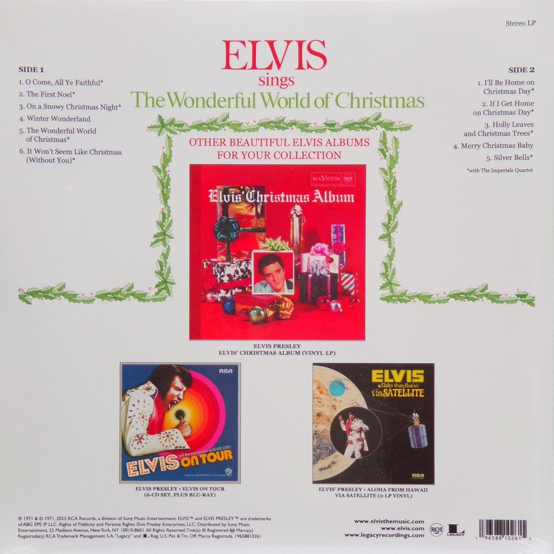 SINGS THE WONDERFUL WORLD OF CHRISTMAS (LP) (US) RCA LSP 4579 Released: September 1971 Side 1 O Come, All Ye Faithful ** First Noel ** On A Snowy Christmas Night ** Winter Wonderland ** Wonderful World Of Christmas ** It Won't Seem Like Christmas (Without You) * Side 2 I'll Be Home On Christmas Day ** If I Get Home On Christmas Day * Holly Leaves and Christmas Trees * Merry Christmas Baby * Silver Bells * * Recorded: RCA Studio B,