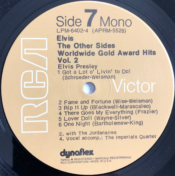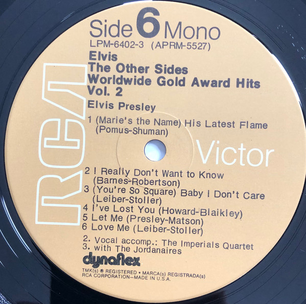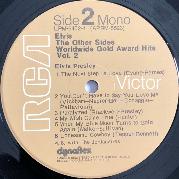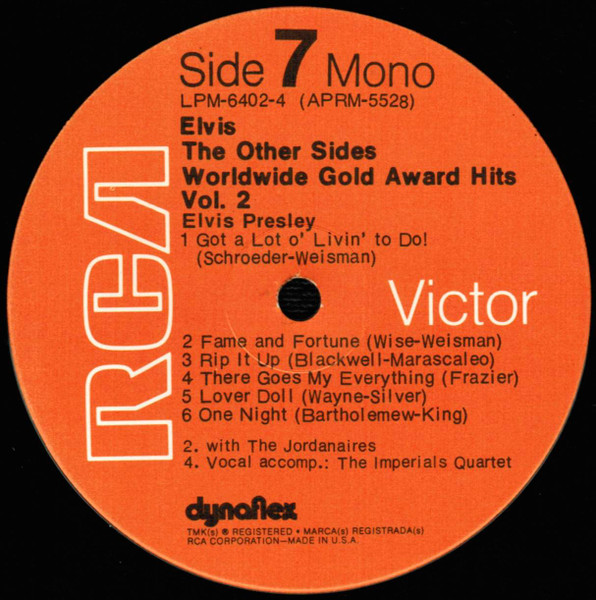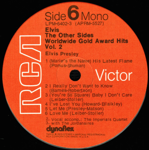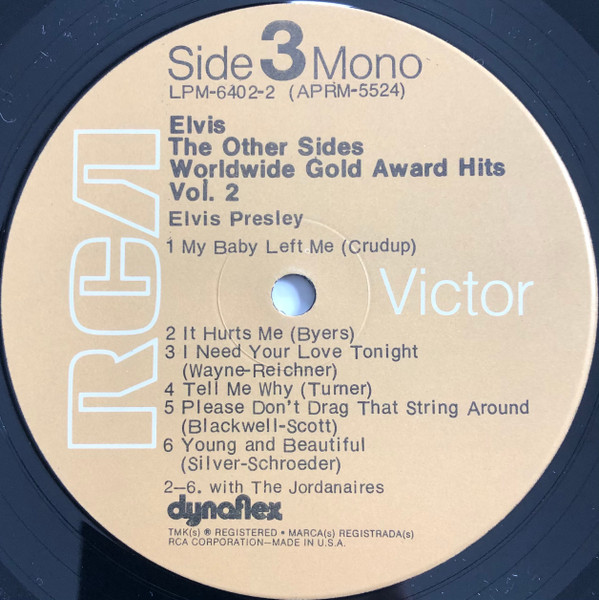 Sides Brief History : The Other Sides - Elvis Worldwide Gold Award Hits Vol. 2 is a compilation album by Elvis Presley, released in August 1971. It was certified Gold on July 15, 1999 by the RIAA. Orange Label: Details : |