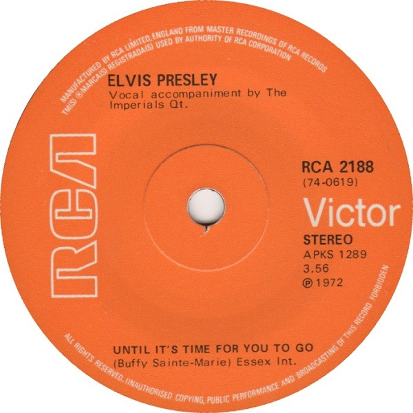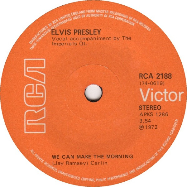 | Label: RCA Victor – RCA 2188 Format: Vinyl, 7", 45 RPM, Single, Solid Centre Country: UK Released: 1972 Manufactured By – RCA Ltd. Published by: Matrix / Runout (Side A label): APKS 1289 |