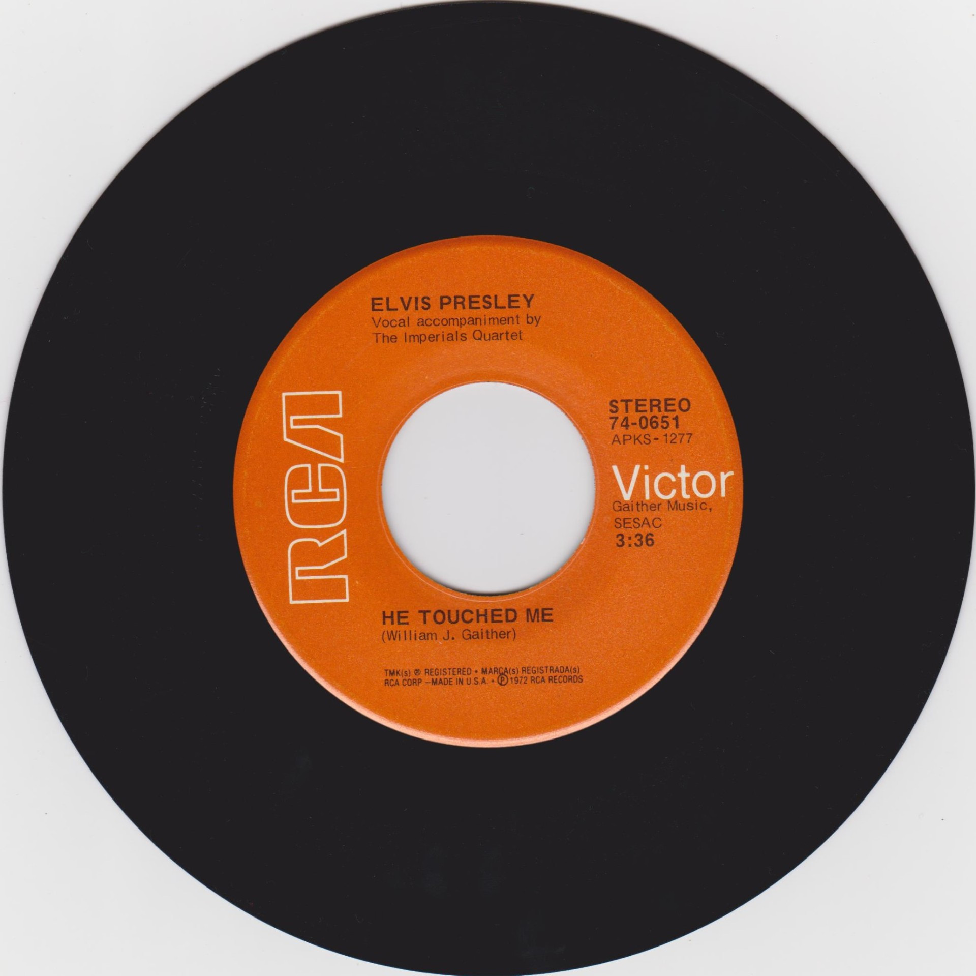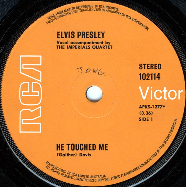 He Touched Me * Brief History : He Touched Me was recorded May 18th, 1971 at RCA Studios, Nashville & Bosom Of Abraham was recorded June 9th, 1971 at the same location. Front Cover : Picture Sleeve |