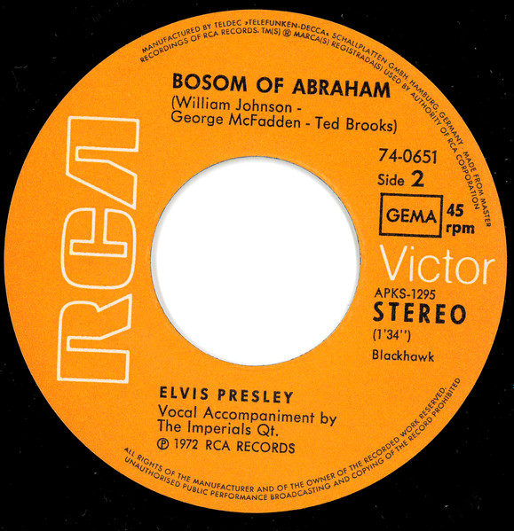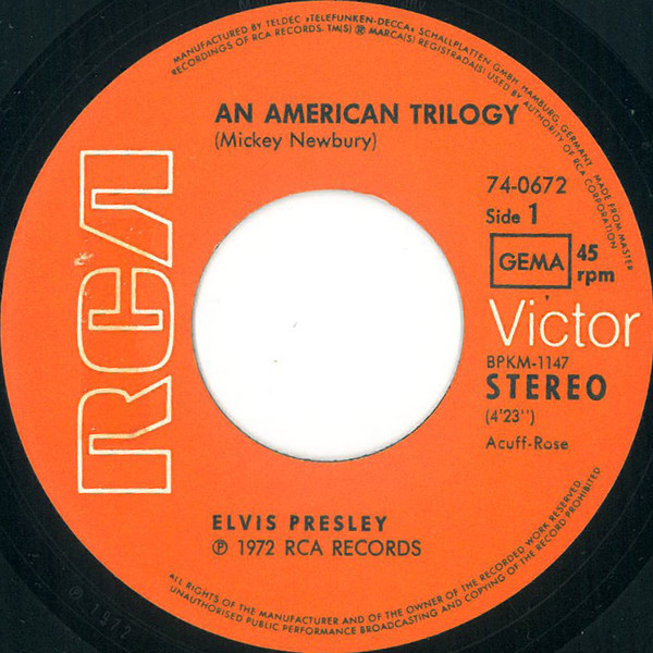 | Label: RCA Victor – 74-0672 Format: Vinyl, 7", 45 RPM, Single Country: Germany Released: 1972 Published By – Acuff-Rose Rights Society: GEMA |