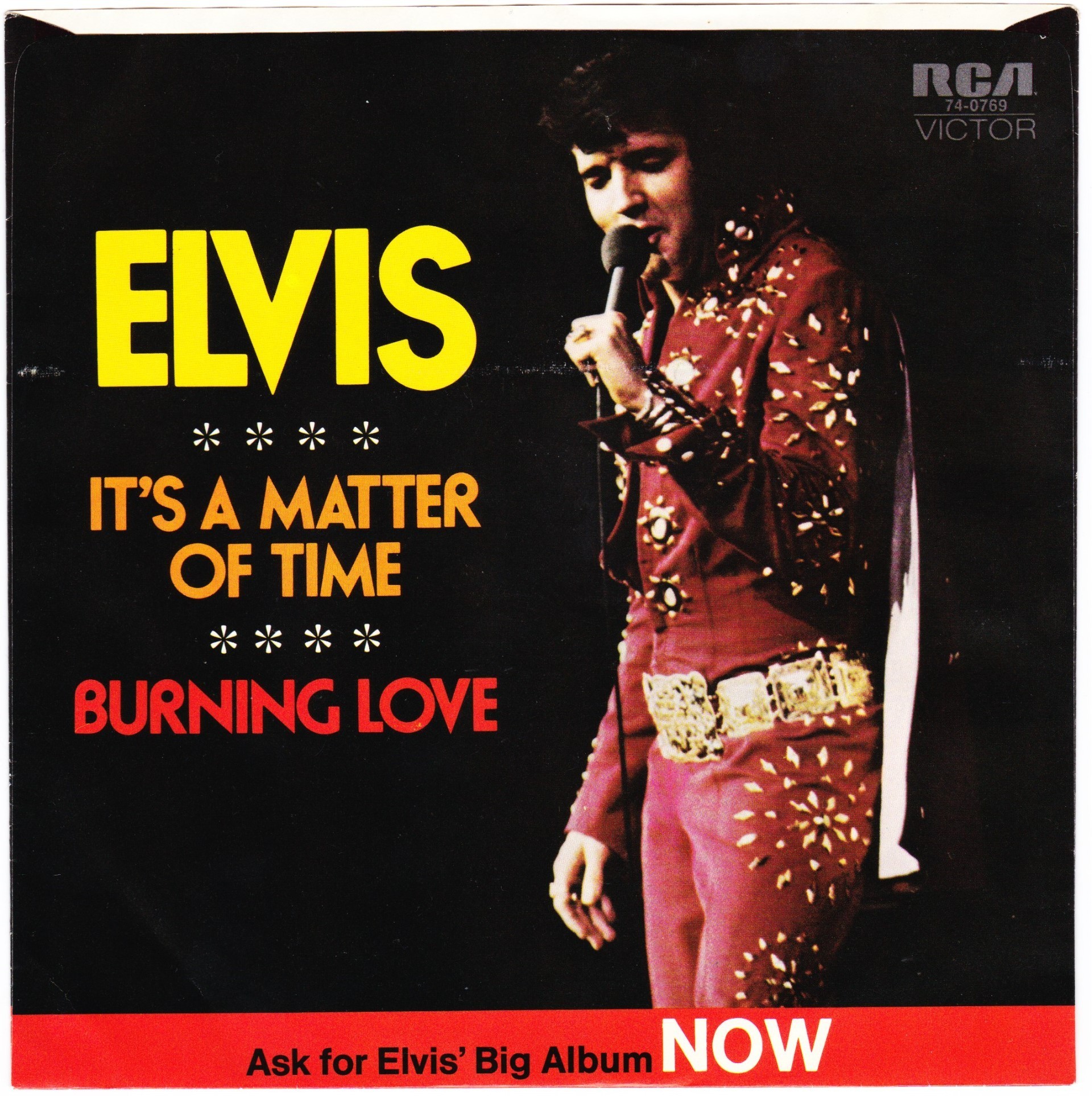 | Label: RCA – RCA-6120 Series: 燃えるエルヴィス・ビッグ20 Format: Vinyl, LP, Album, Reissue Country: Japan Released: Apr 1973 Manufactured By – Victor Musical Industries, Inc. Made In Japan. One of a series of Elvis albums re-issued following the success of the Aloha From Hawaii TV Special. The first copies came with the usual obi and lyrics / linear notes insert as well as a 12" x 24" color portrait. |