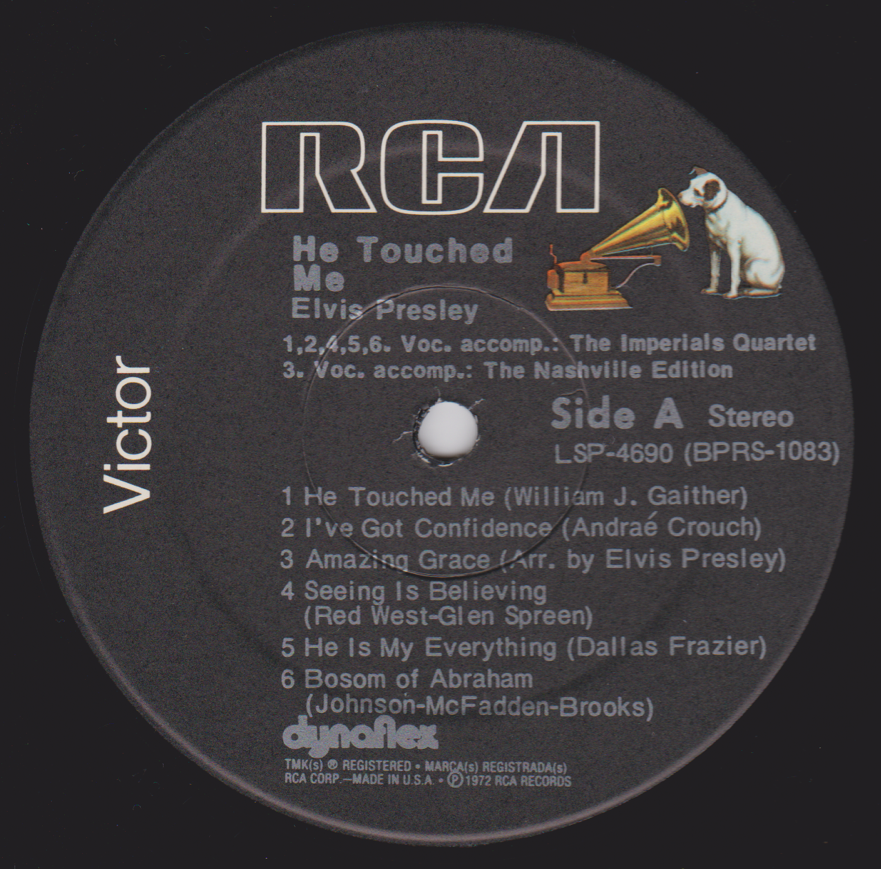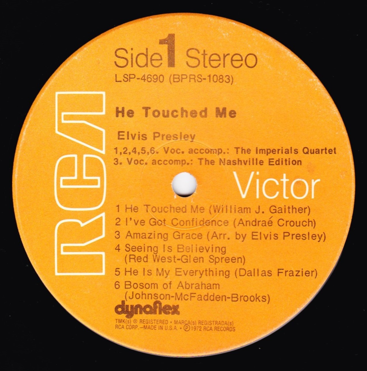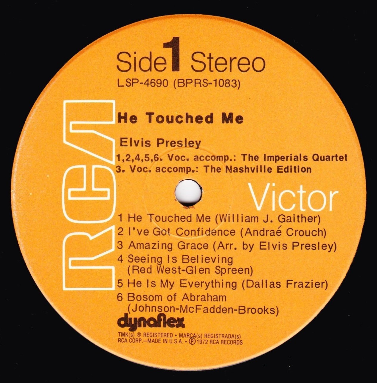 TOUCHED ME (LP) (US) RCA LSP 4690 Released: April 1972 Side 1 He Touched Me I've Got Confidence *** Amazing Grace * Seeing Is Believing **** He Is My Everything ****** Bosom Of Abraham Side 2 Evening Prayer *** Lead Me, Guide Me ** There Is No God But God ****** Thing Called Love **** I, John ****** Reach Out To Jesus ***** *