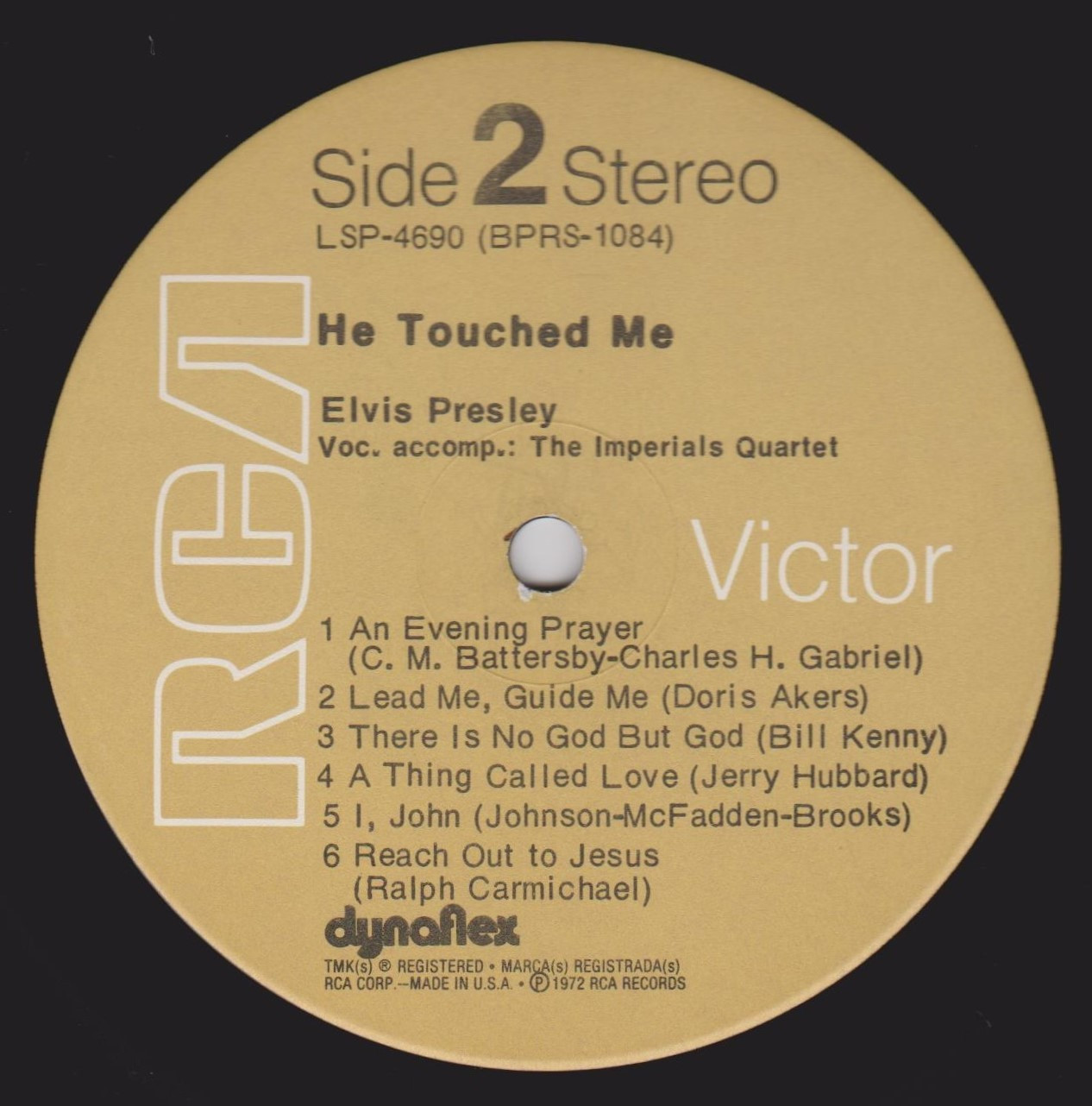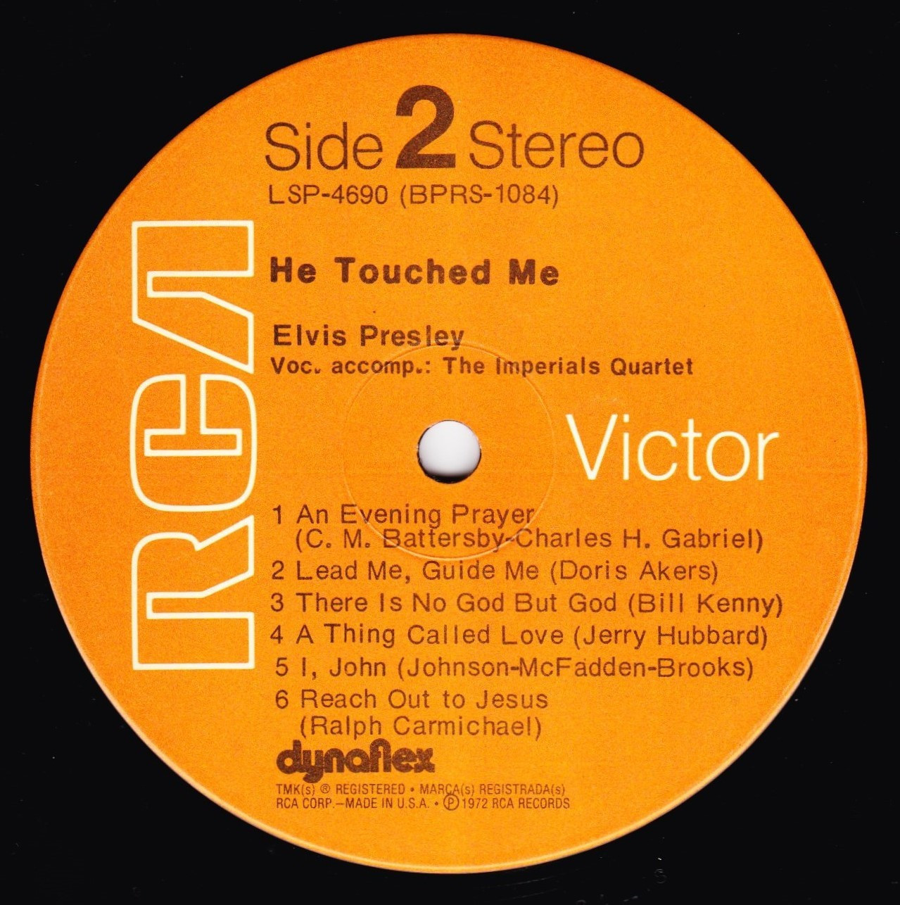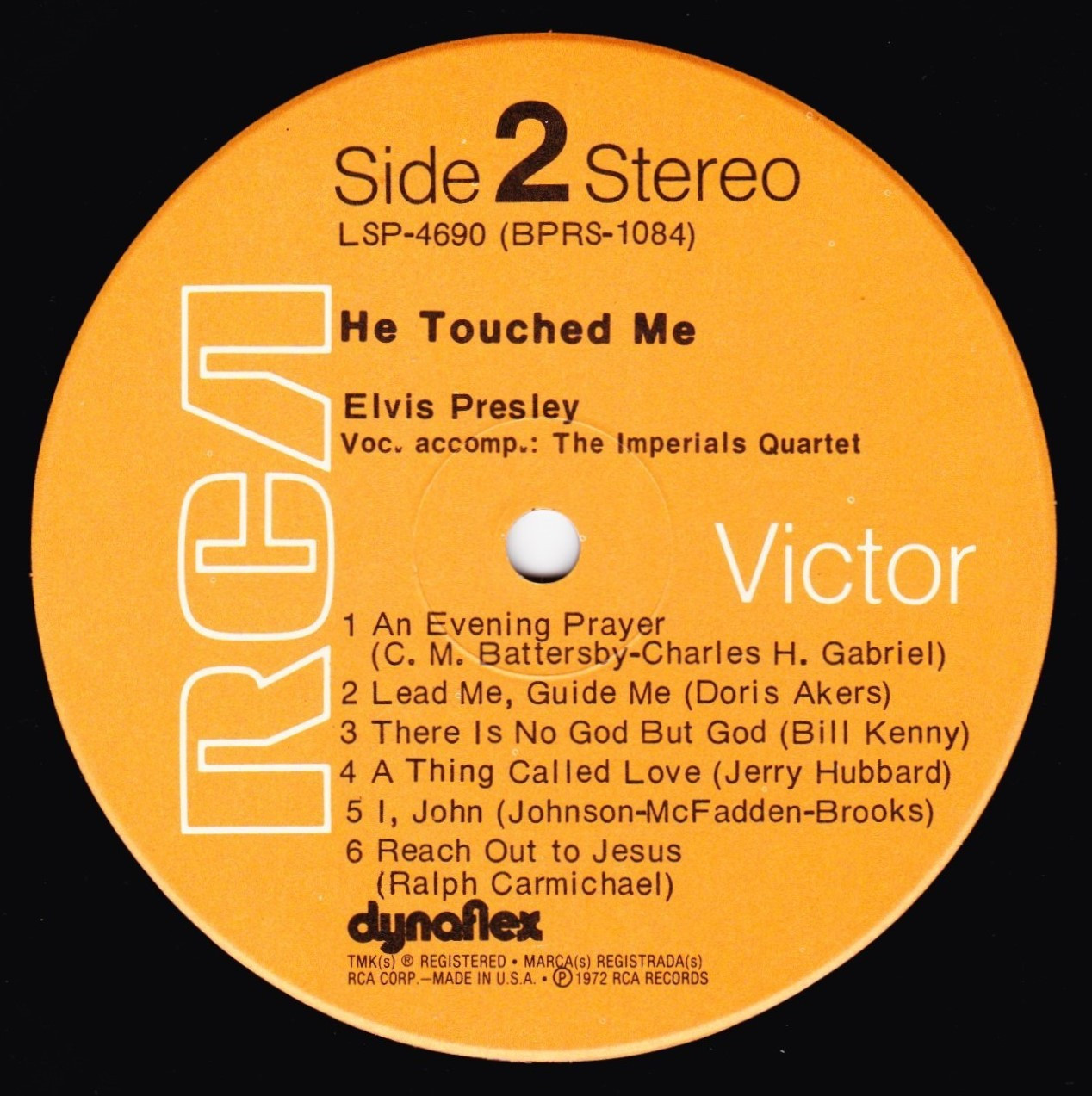 | Front Cover : Title top centre. Catalogue number top right. Rear Cover : Advertising 2 Elvis gospel albums. Catalogue number top centre. Printed in U.S.A. bottom centre. Label : Orange. Dynaflex vinyl. Side 1 : Stereo at top. Side 2 : Stereo at top. Pressing Plant : Hollywood Matrix Number Side 1 : BPRS - 1083 - 4S (Machine Stamped) Matrix Number Side 2 : BPRS - 1084 - 4S (Machine Stamped) *NOTE* Standard front cover issue no promotional sticker. |