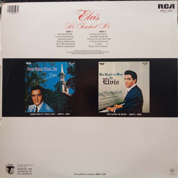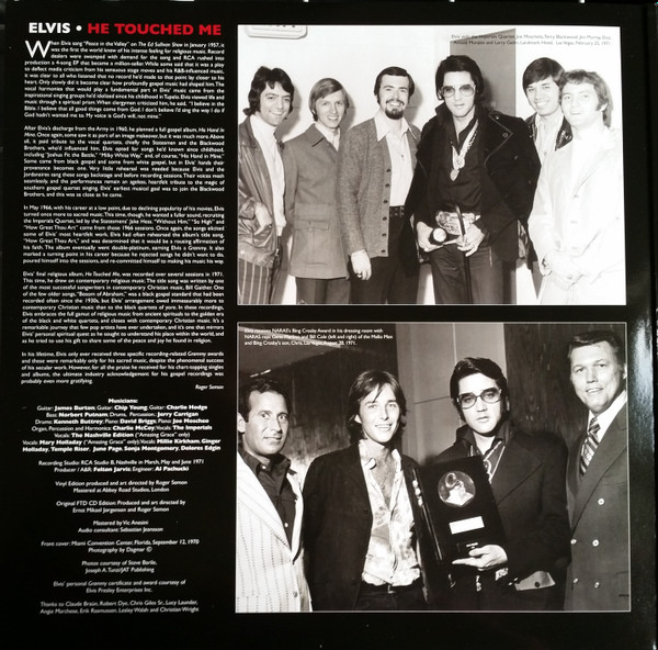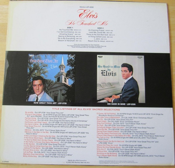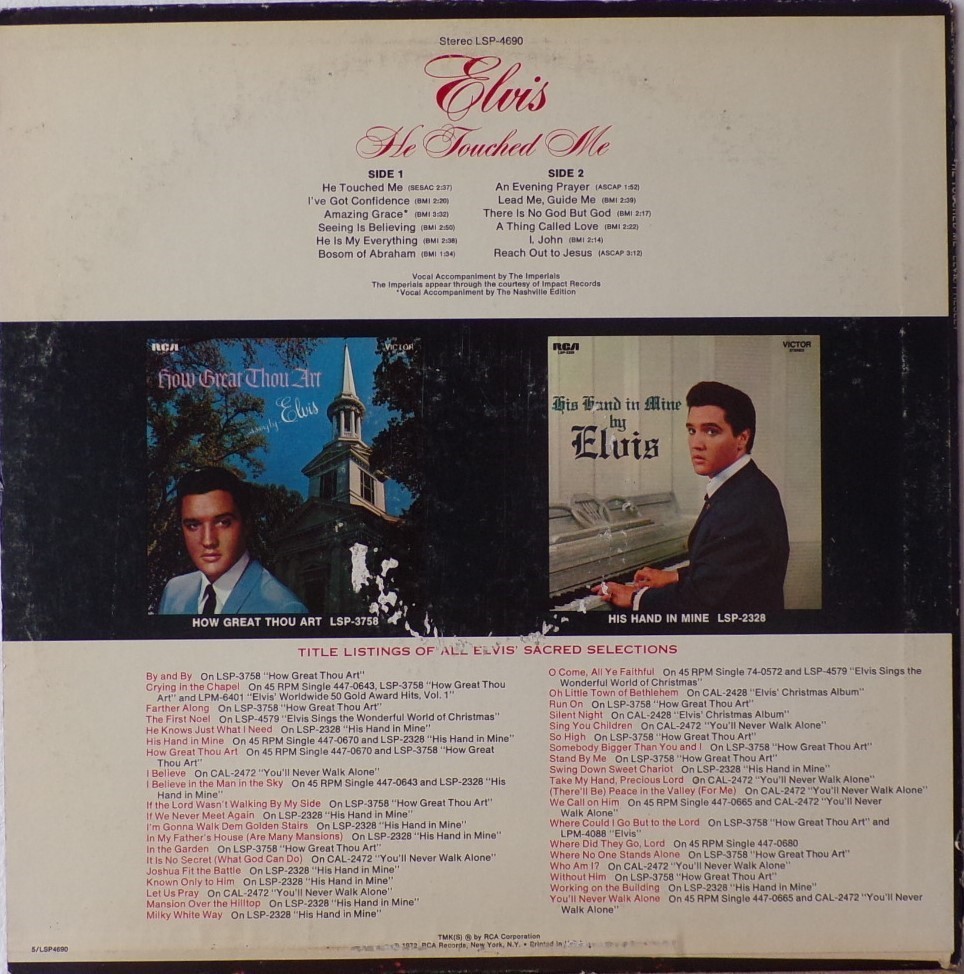 mbH, form Master Recordings of RCA Back cover differs from later re-releases; Smaller tracklist and with a listing of all Elvis’ sacred songs. Rights Society: GEMA |