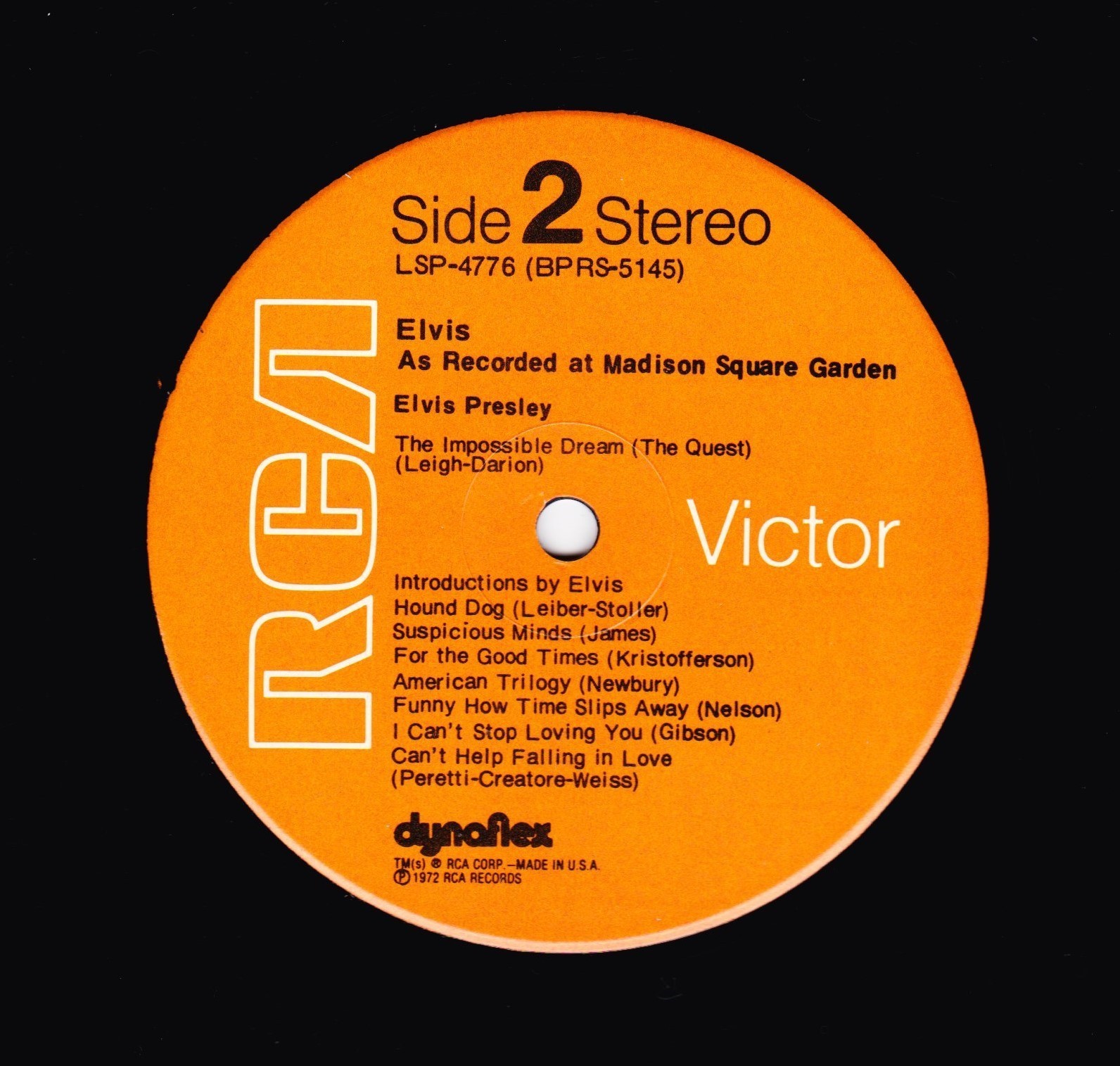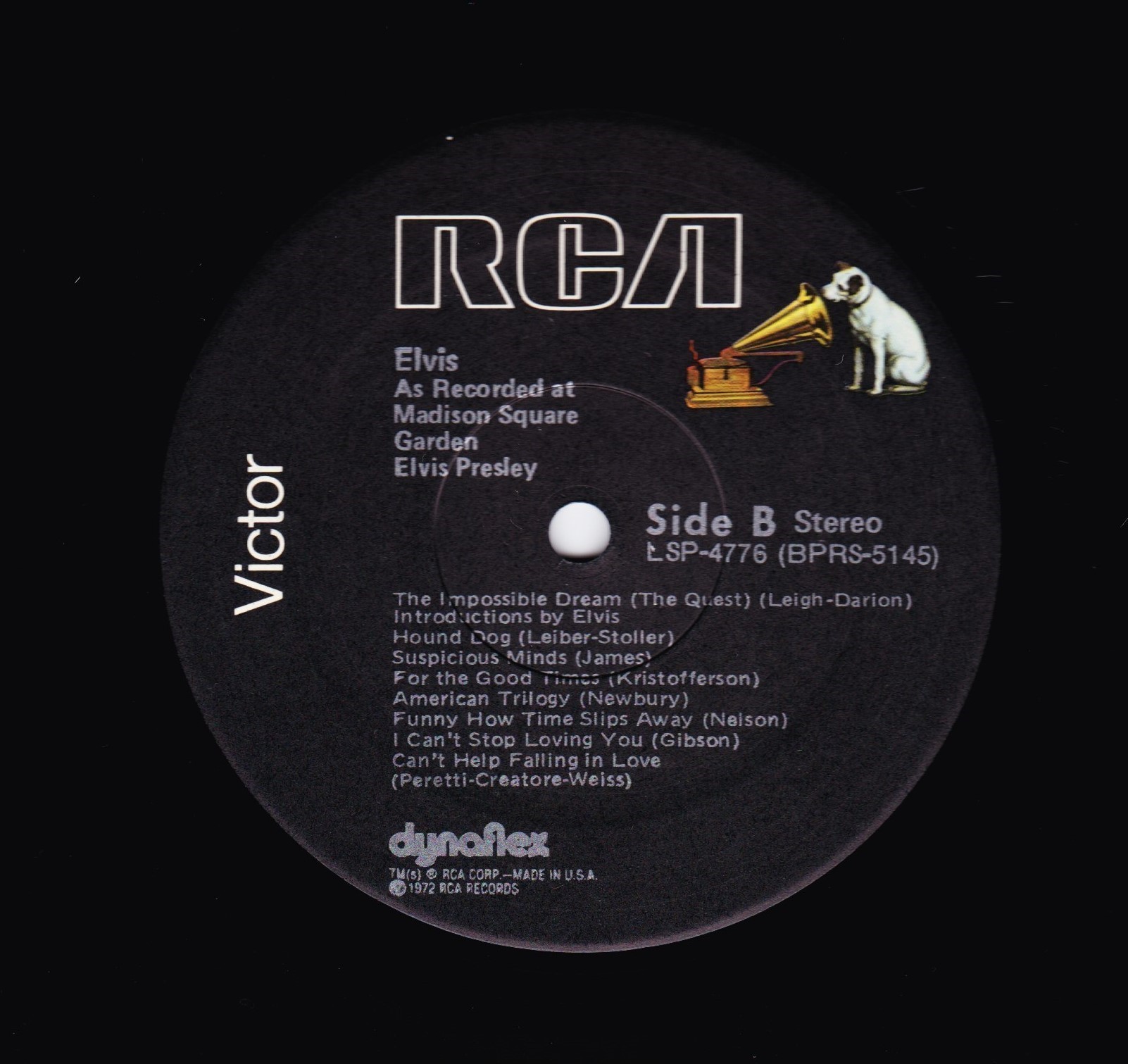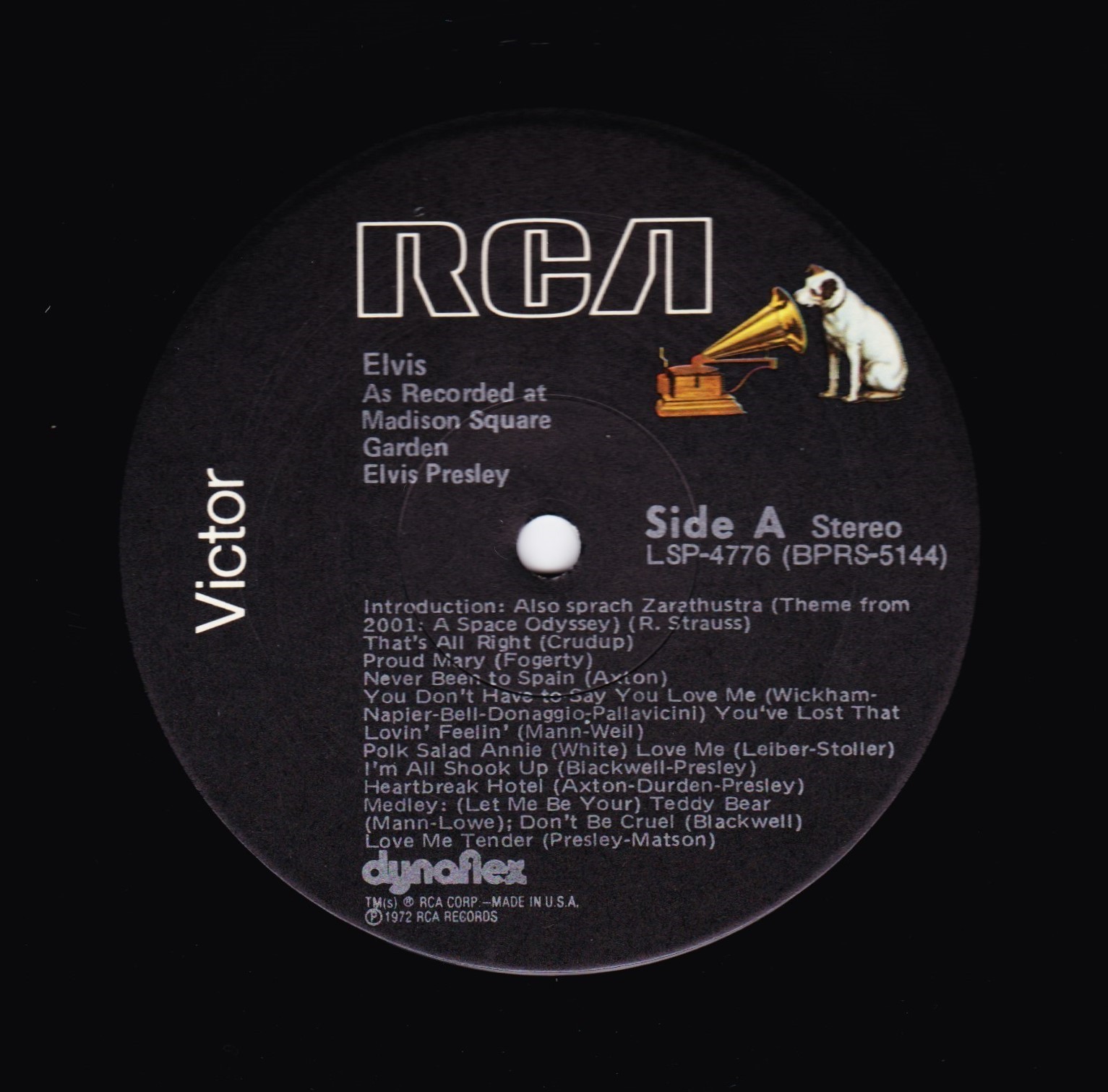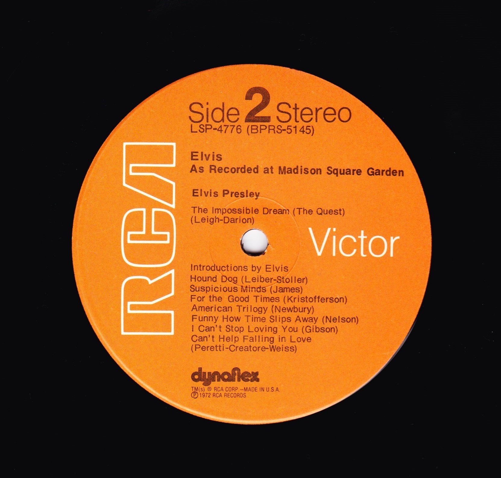 AS RECORDED AT MADISON SQUARE GARDEN (LP) (US) RCA LSP 4776 Released: June 1972 Side 1 Introduction: Also Sprach Zarathustra * That's All Right * Proud Mary * Never Been To Spain * You Don't Have To Say You Love Me * You've Lost That Lovin' Feelin' * Polk Salad Annie * Love Me * All Shook Up * Heartbreak Hotel * Teddy Bear / Don't Be Cruel * Love Me Tender * Side 2 Impossible Dream * Introduction By Elvis * Hound Dog * Suspicious Minds * For The Good Times * American Trilogy * Funny How Time Slips Away * I Can't Stop Loving You * Can't Help Falling In Love * End Theme * * Recorded: