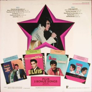 | Details : 1976 Release Front Cover : Photo of Elvis. Title top right. Catalogue number top left. Rear Cover : Promoting 2 Elvis albums. Catalogue number top right. Printed in U.S.A. bottom. Label : Tan. Dynaflex vinyl. Side 1 : Stereo at top. Side 2 : Stereo at top. Pressing Plant : Indianapolis Matrix Number Side 1 : BPRS - 5144 - 1S A1 (Machine Stamped) Matrix Number Side 2 : BPRS - 5144 - 1S B1 (Machine Stamped) *NOTE* Rear cover number "2" bottom right. |